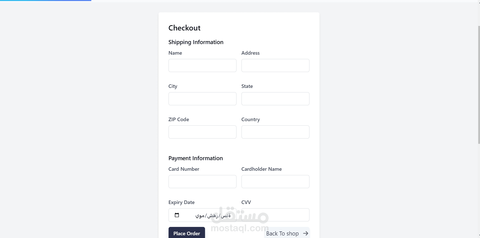 صفحة -checkout لإتمام عملية الشراء و الدفع