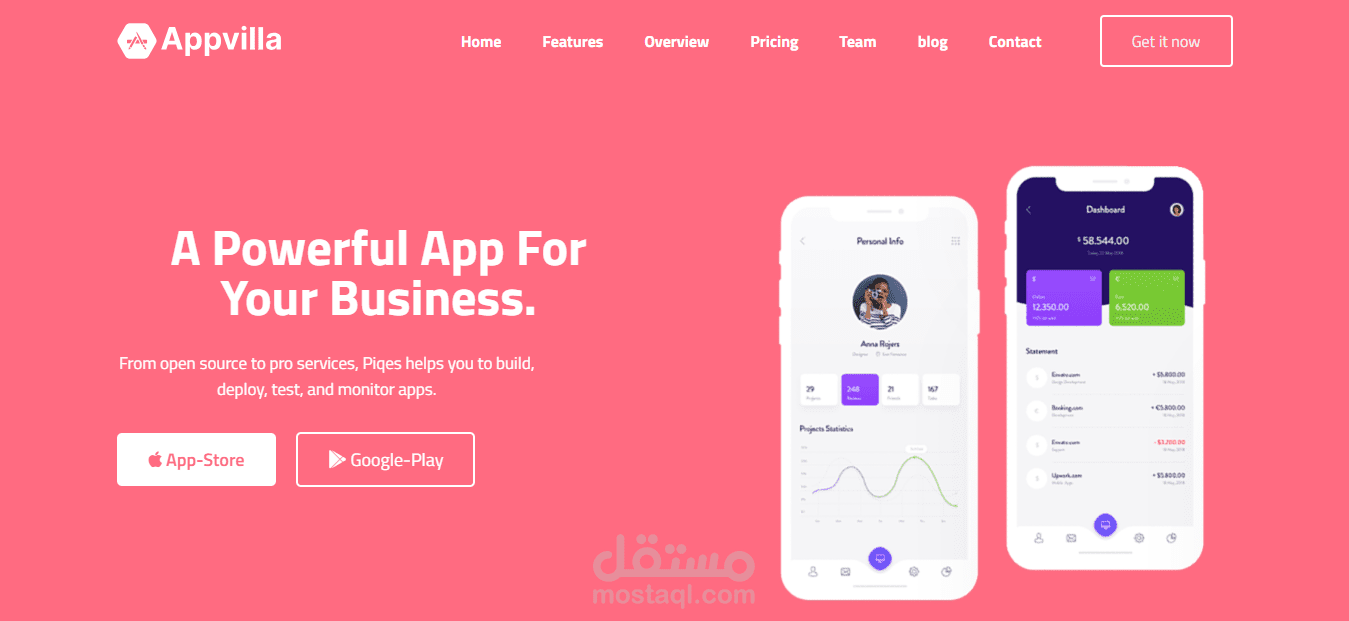 Appvilla عبارة عن مشروع صفحة هبوط وهو مشروع كامل التسيق ع شاشة التابليت والموبايل و الشاشات الكبيرة
