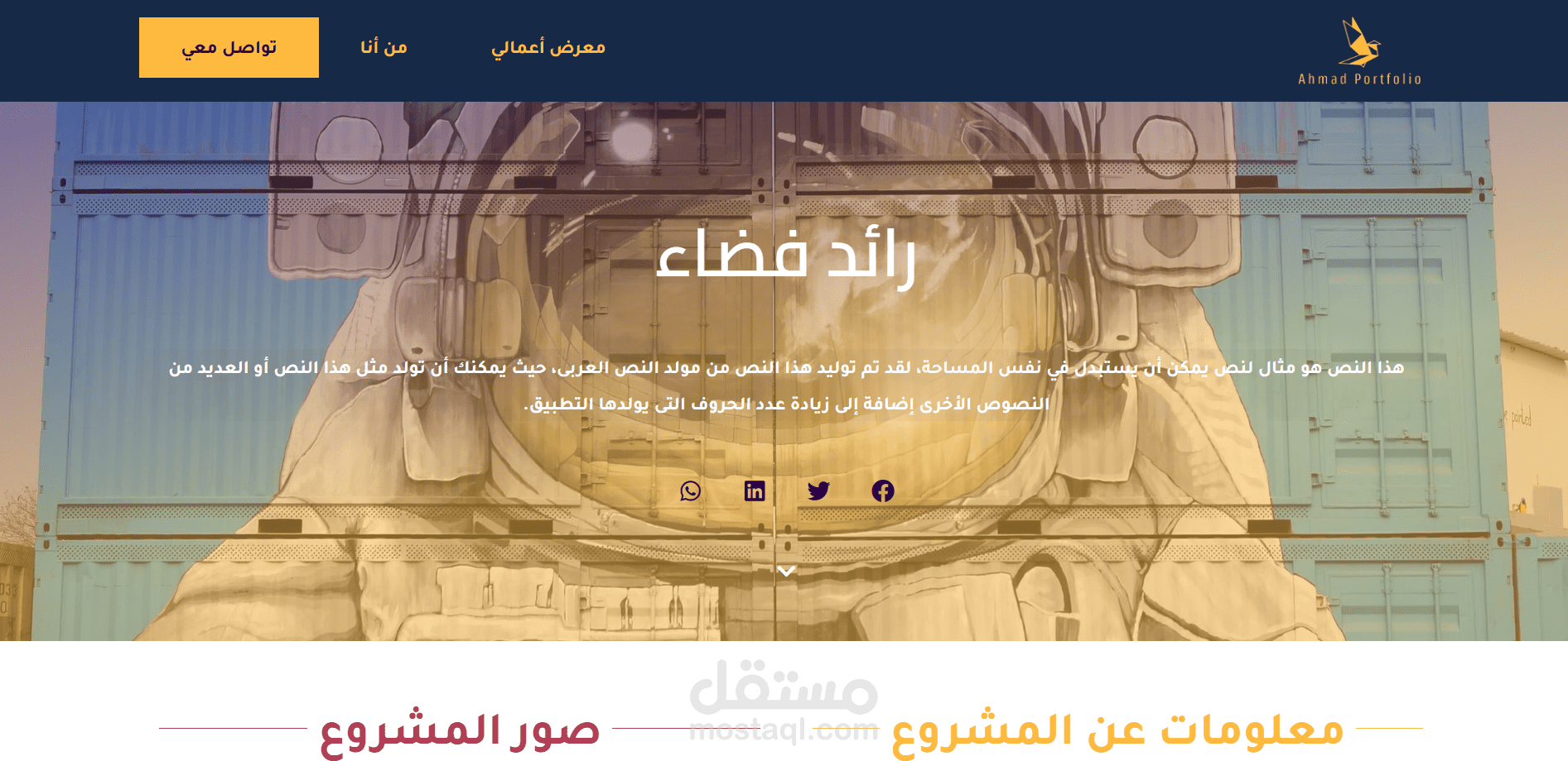 يتميز القالب بواجهته الأنيقة والبسيطة لتوفر مجالاً مناسباً لعرض أعمالك وإبراز جمالها وجذب الانتباه لها