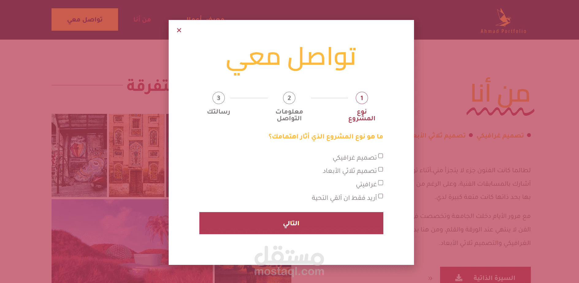 في حال رغب العميل بإرسال رسالة مباشرة إليك، هنالك نافذة "تواصل معي" المخصصة لإرسال رسالة مباشرة بطريقة مميزة، ويمكن الوصول إلى هذه الرسائل بأي وقت من خلال لوحة التحكم على ووردبريس والرد عليها