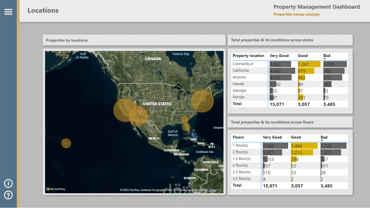 Geographic Analysis: The dashboard includes interactive maps that display housing data geographically. Users can explore property prices, sales volumes, and market conditions by region, city, or neighborhood. Heatmaps or bubble maps can be utilized to highlight areas with high or low housing prices, enabling users to assess market competitiveness and investment potential.