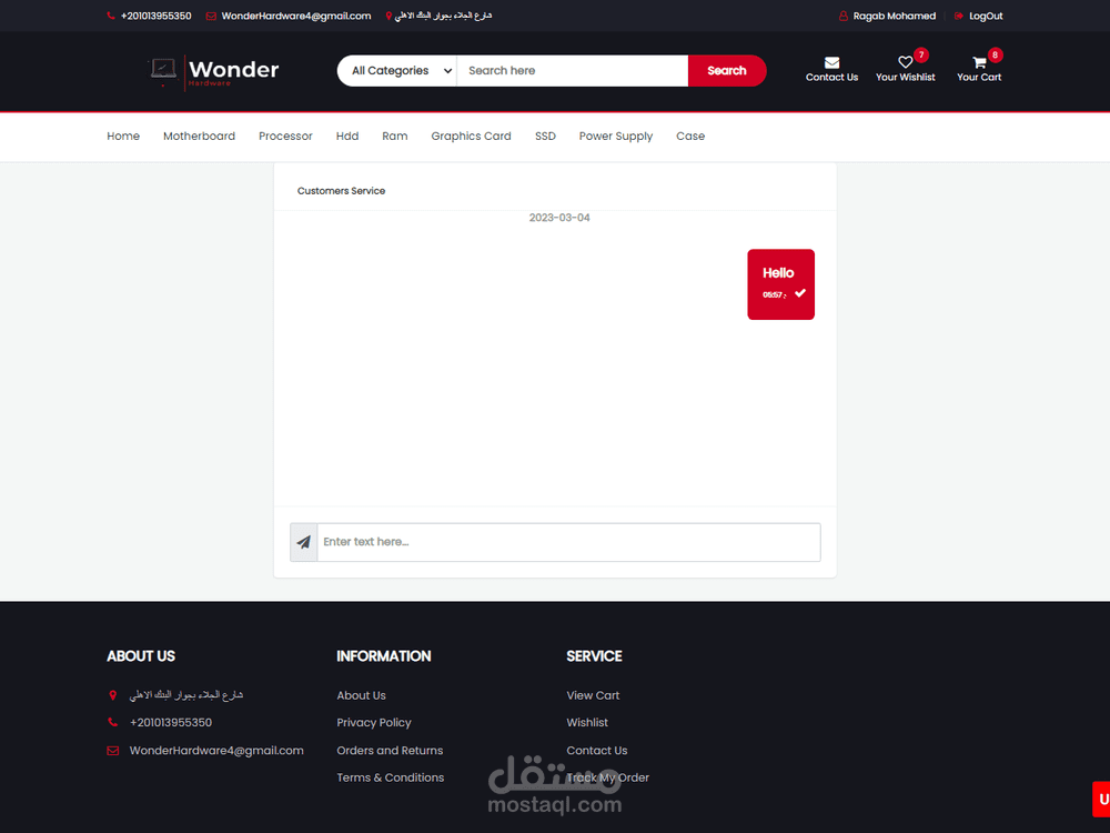 متجر الكتروني لبيع جميع منتجات الكمبيوتر وجميع الأجزاء من لوحة تحكم و كاسه ...الخ ، ويتوفر فيه كثير من الخدمات كالأتي :