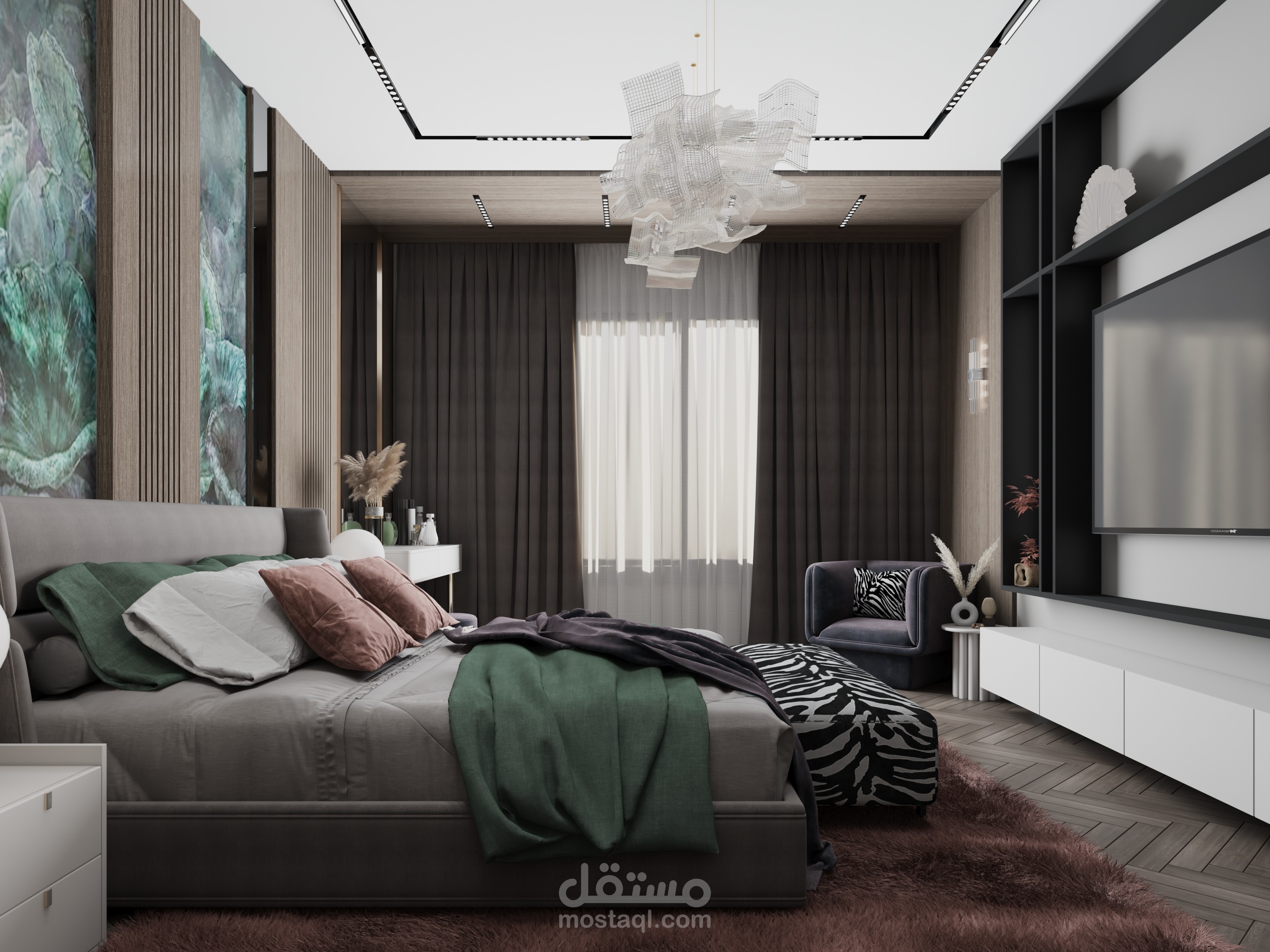 تصميم داخلي مودرن لغرفة نوم رئيسية