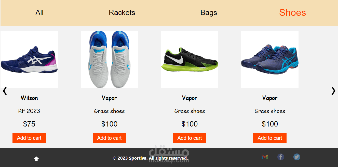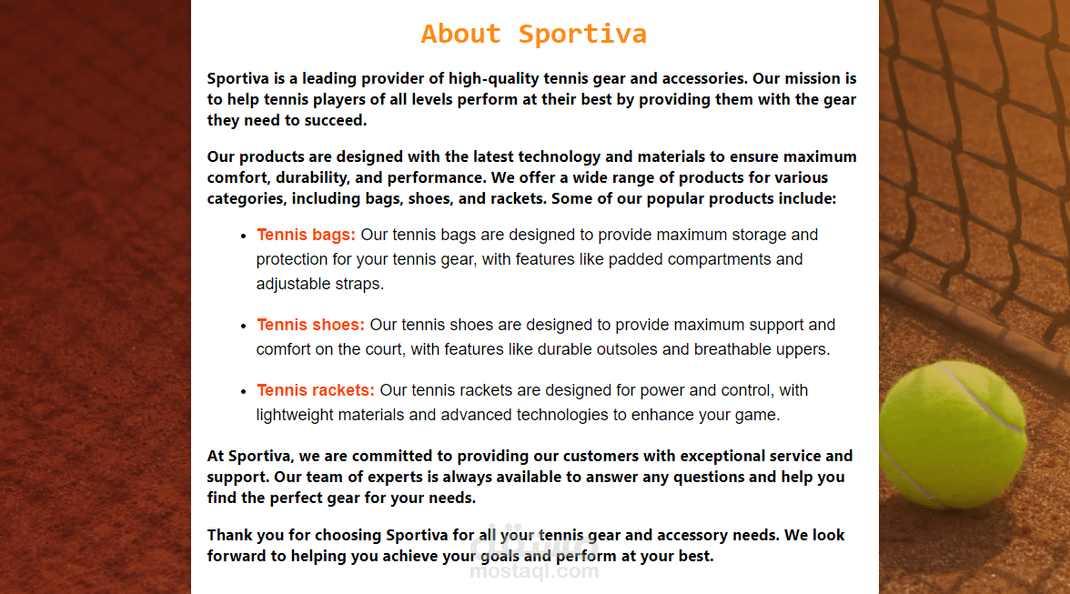موقع sportiva هو موقع تجارة إلكترونية يتم من خلاله بيع منتجات لعبة التنس الأرضي