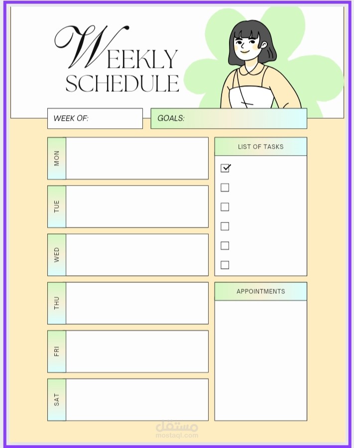 كل ما عليك هو اعلامى بمهامك اليومية واهتماماتك لأرتب لك جدول رائع من حيث التنظيم و قالب رائع وألوان مميزة لك.