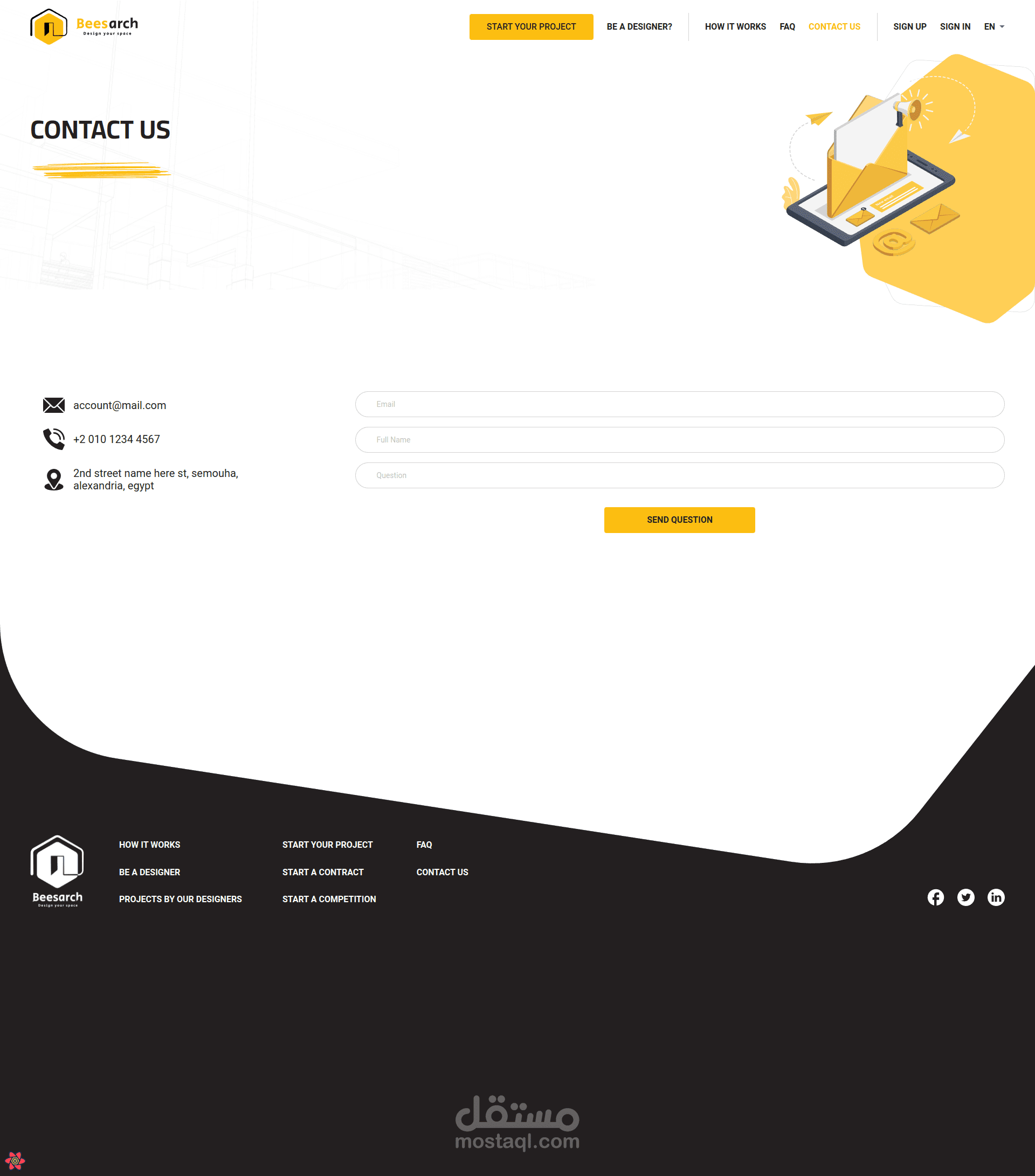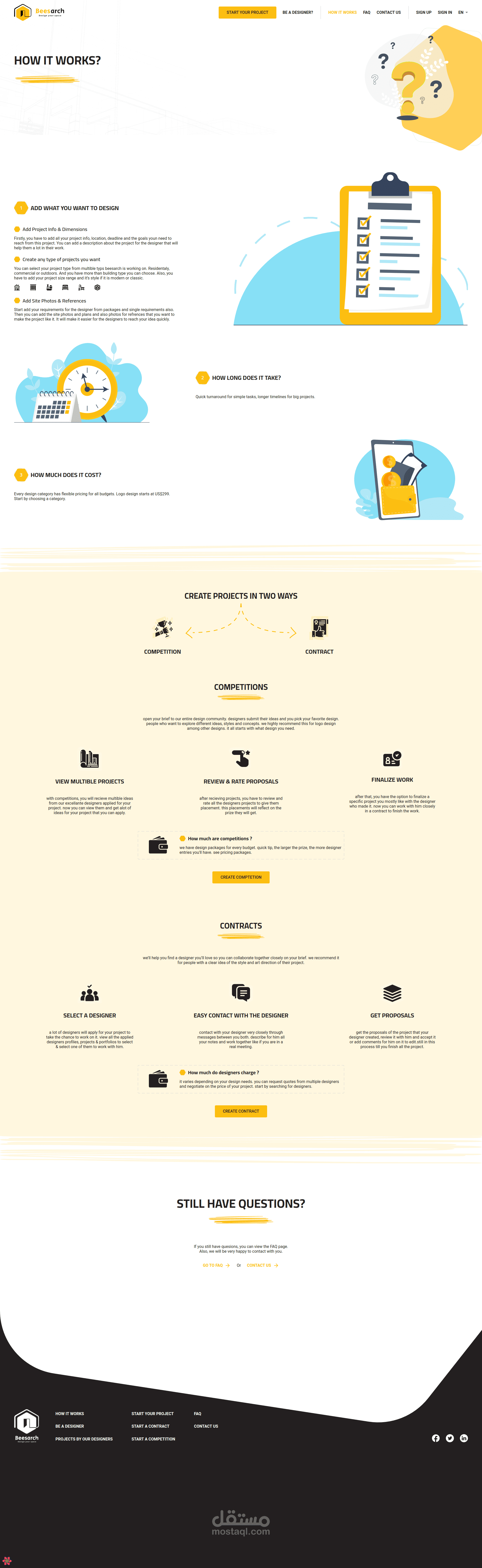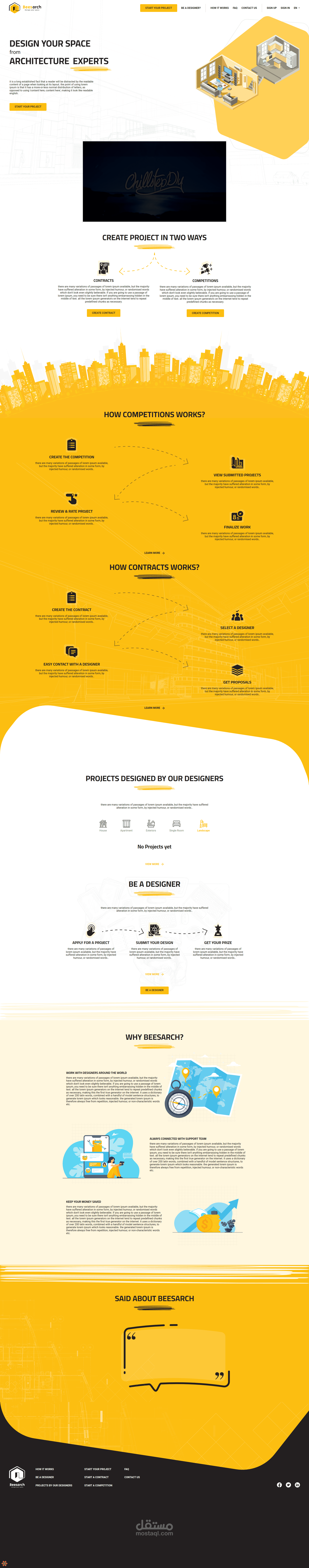 منصة مستقلة مصممة خصيصًا لعمال البناء. تسمح المنصة للعملاء بإنشاء عقود والاختيار من بين مجموعة من المستقلين بناءً على مؤهلاتهم وخبراتهم. يمكن للعملاء استخدام PayPal لتحويل الأموال إلى المستقلين عند اكتمال كل جزء من المشروع. بالإضافة إلى ذلك ، تتضمن المنصة نظام منافسة يسمح للمستقلين بعرض مهاراتهم والتنافس على الجوائز. يمكن للعملاء اختيار أفضل خمسة تصميمات وجوائز جوائز وفقًا لذلك. لضمان عملية سلسة وعادلة ، تتميز المنصة أيضًا بنظام حل النزاعات للمساعدة في حل أي نزاعات قد تنشأ. بشكل عام ، تم تصميم Beesarch لتوفير منصة سهلة الاستخدام وفعالة لكل من العملاء والمستقلين في صناعة البناء.