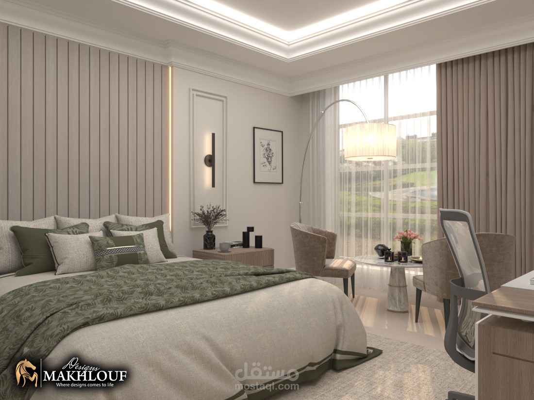 غرفة نوم بتصميم اسكندنافى نيو كلاسيك