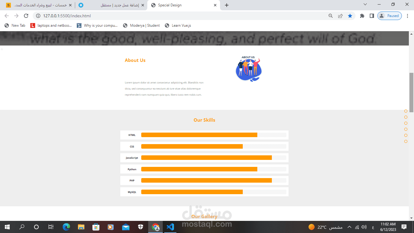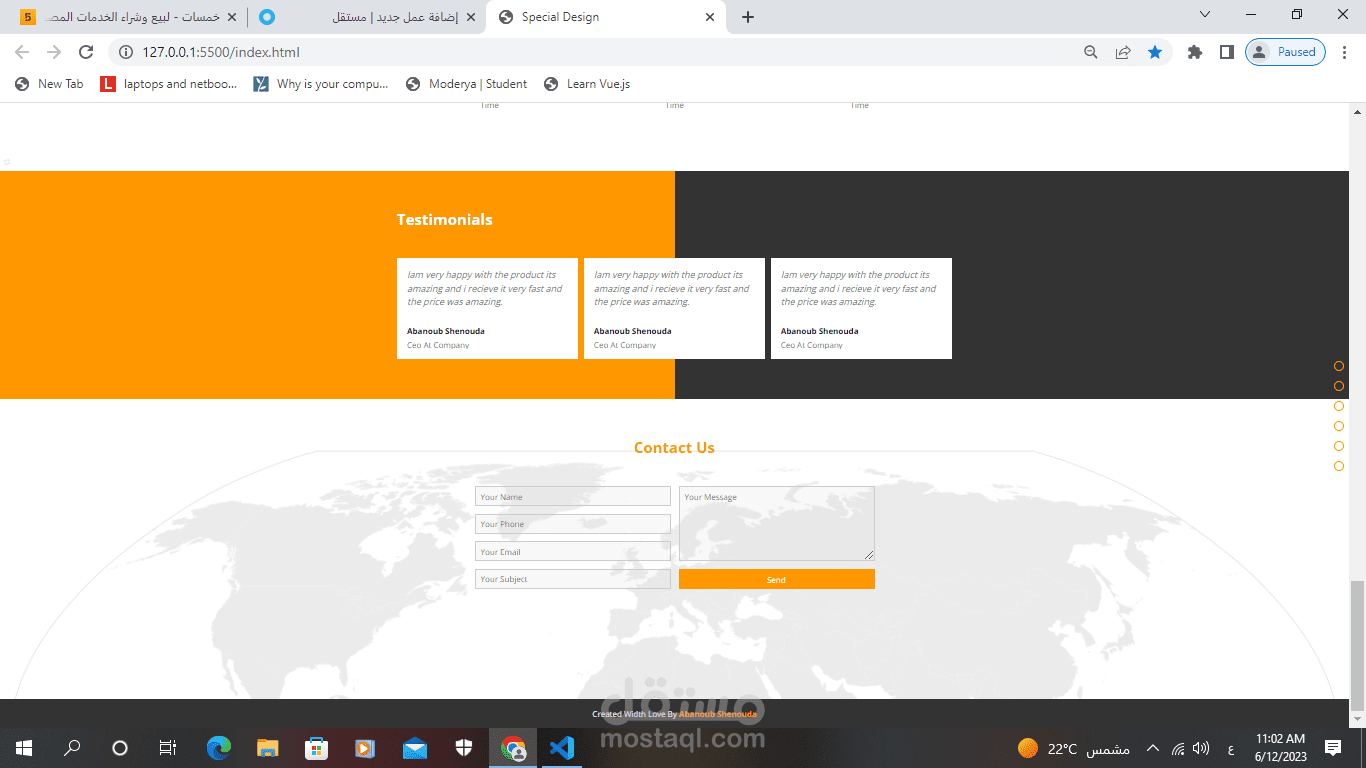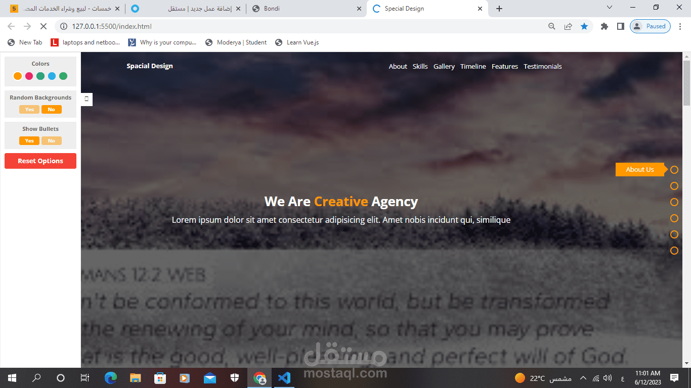 وفى الموقع يستطيع المستخدم التنقل بين اقسام الصفحة بسهوله مع امكانية تغير اللوان المحتوى والخلفيات