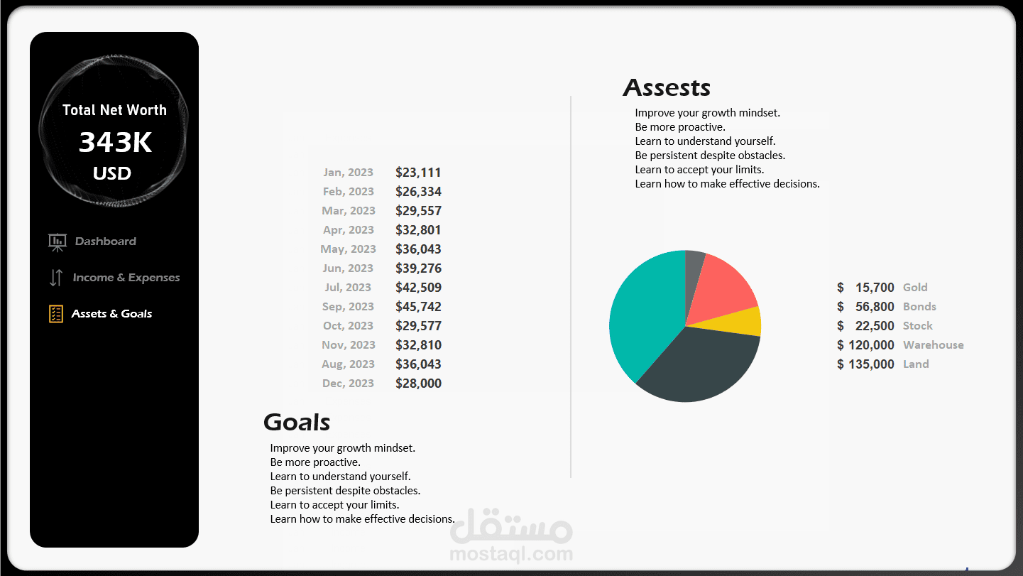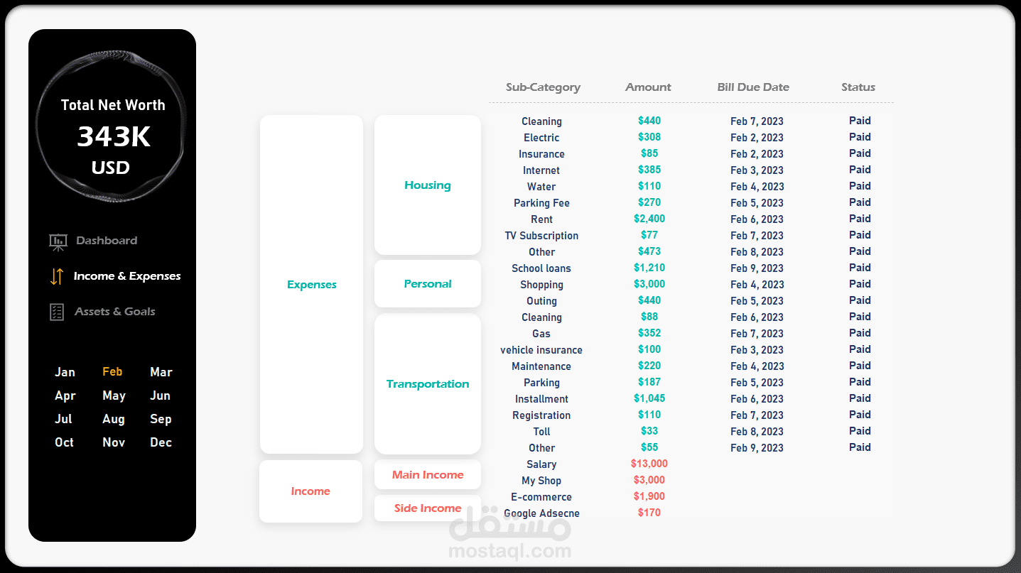لوحة بيانات تفاعلية عن المصروفات الشخصية باستخدام الاكسيل