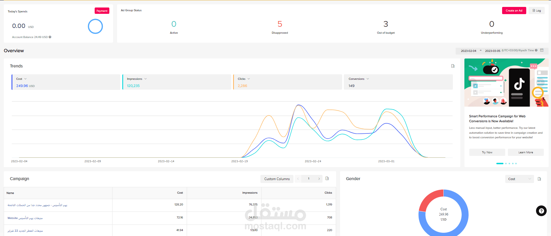 ولكن بعد بدأ حملات التجريب Test Campaign في مختلف المنصات توصلنا إلي أقل سعر علي منصة التيكتوك