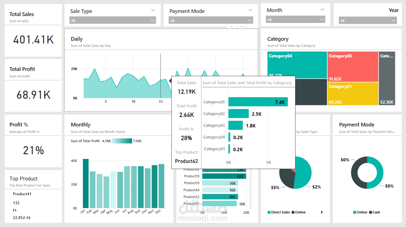 لوحة بيانات تفاعلية عن المبيعات باستخدام برنامج Power BI