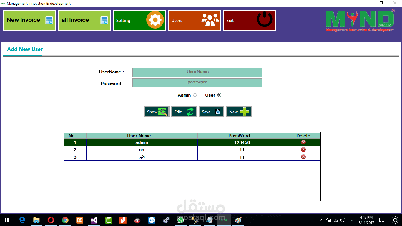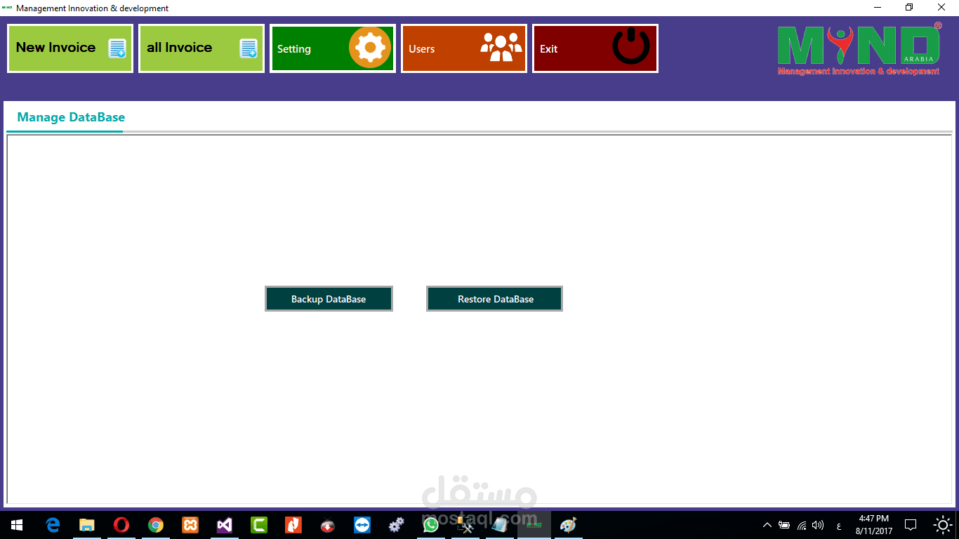 يحتوى البرنامج على شاشة ادخال بيانات الفاتورة + تقرير + شاشة صلاحيات مستخدمين + شاشة ادارة نسخ احتياطية