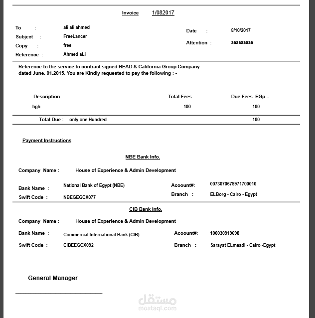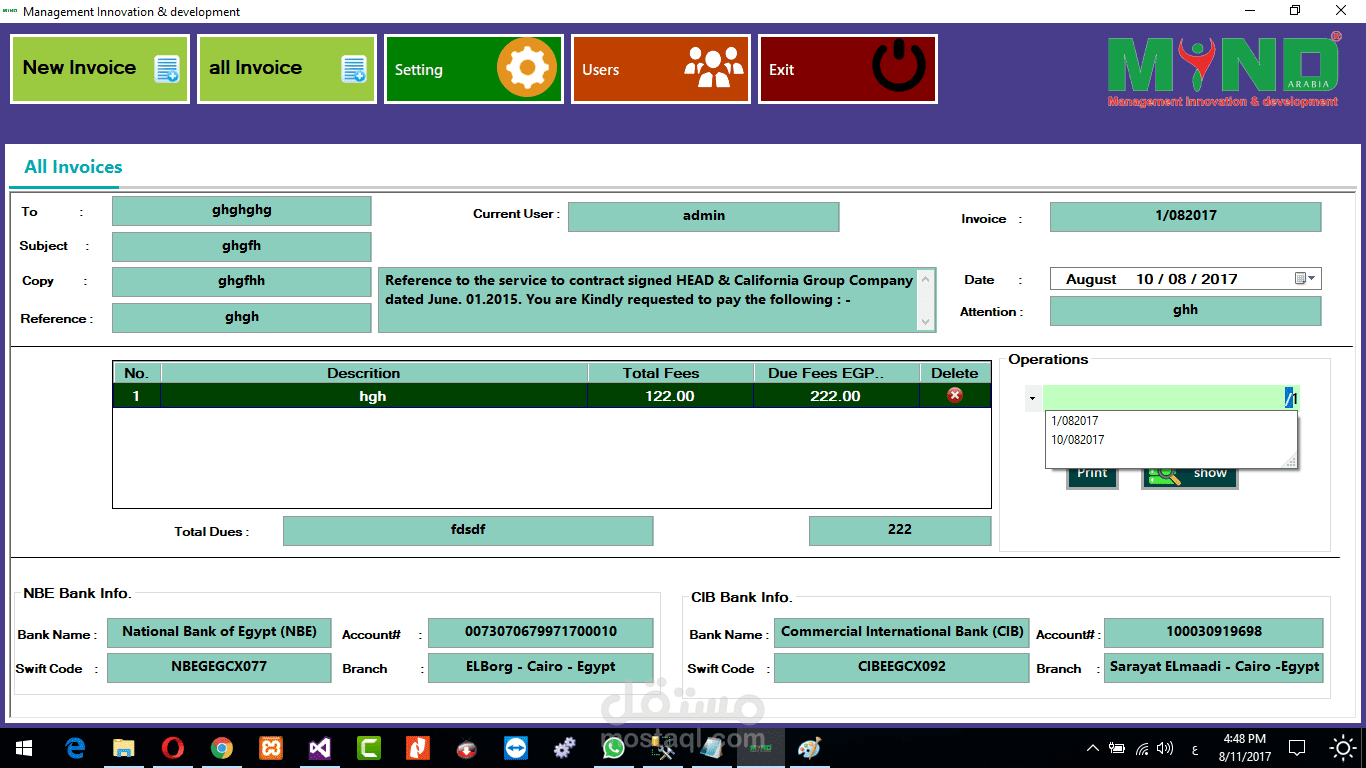 برنامج لتسجيل وطباعة فاتورة باستخدام واجهة E