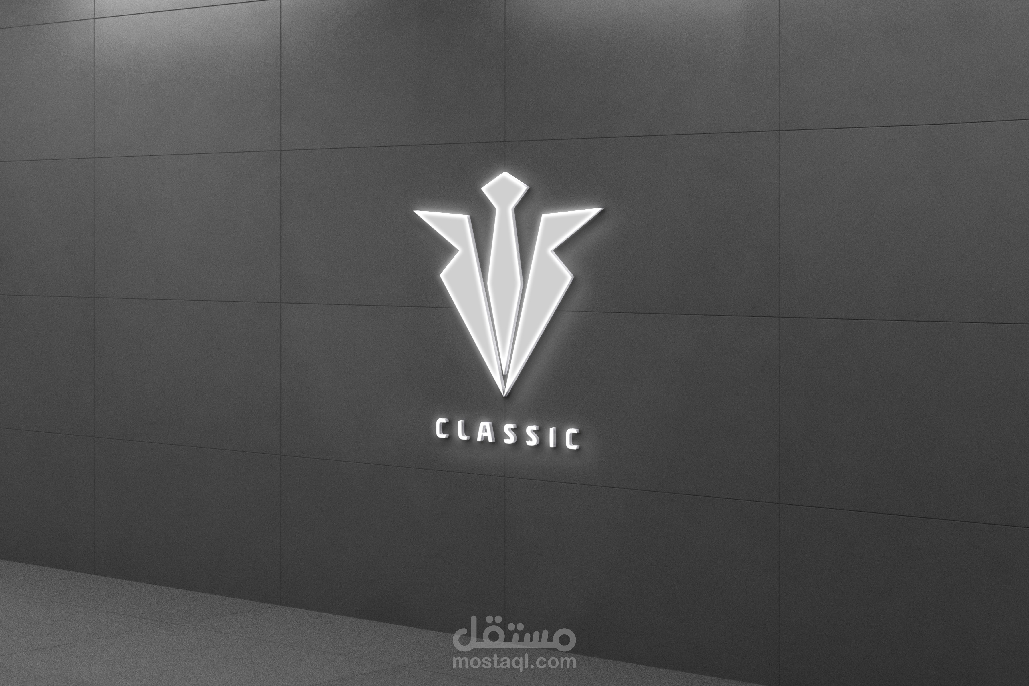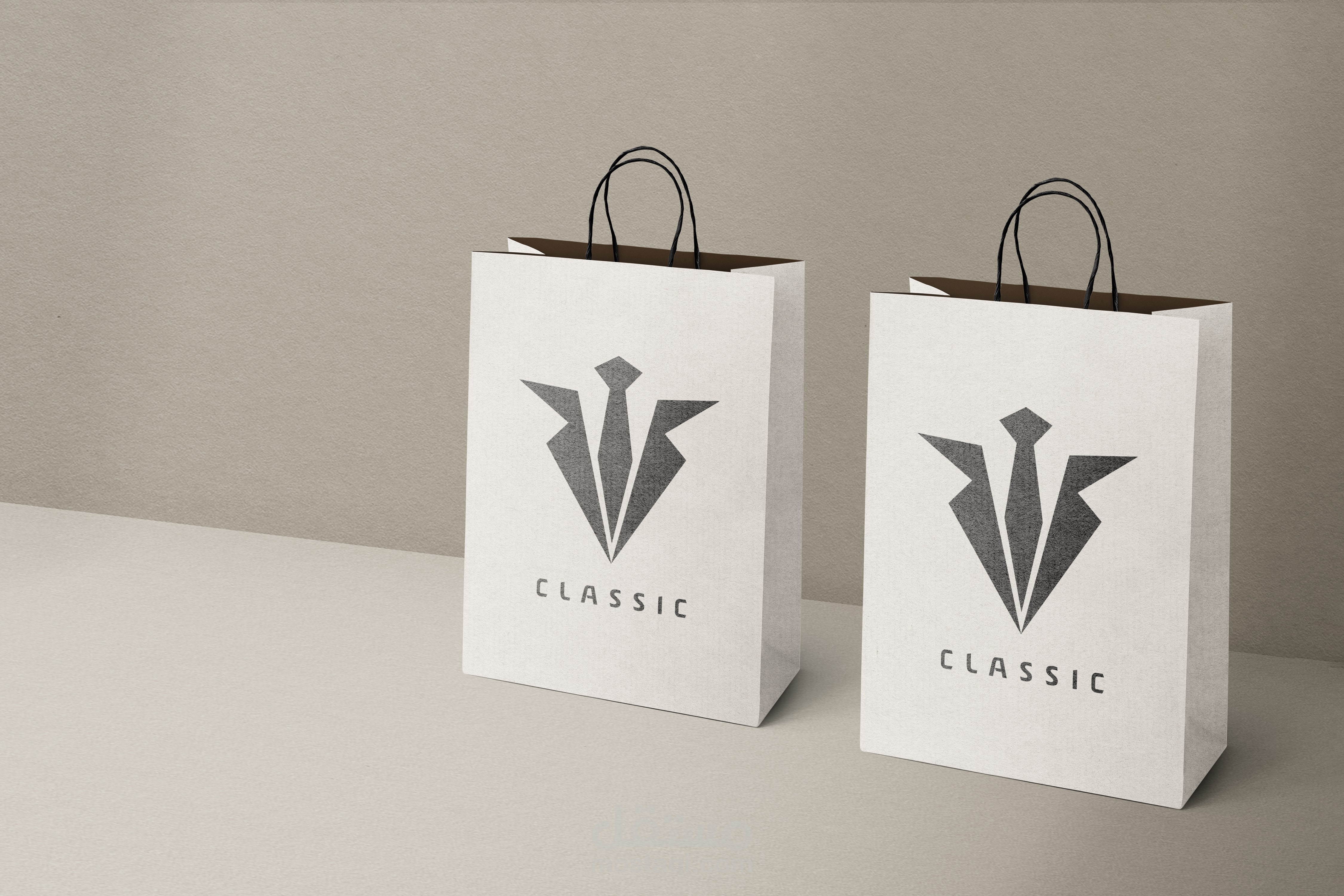 و تم تصميم اللوجو فيما يتناسب مع هوية الـ ستور الخاص بالـ بدل و الملابس الكلاسيكية