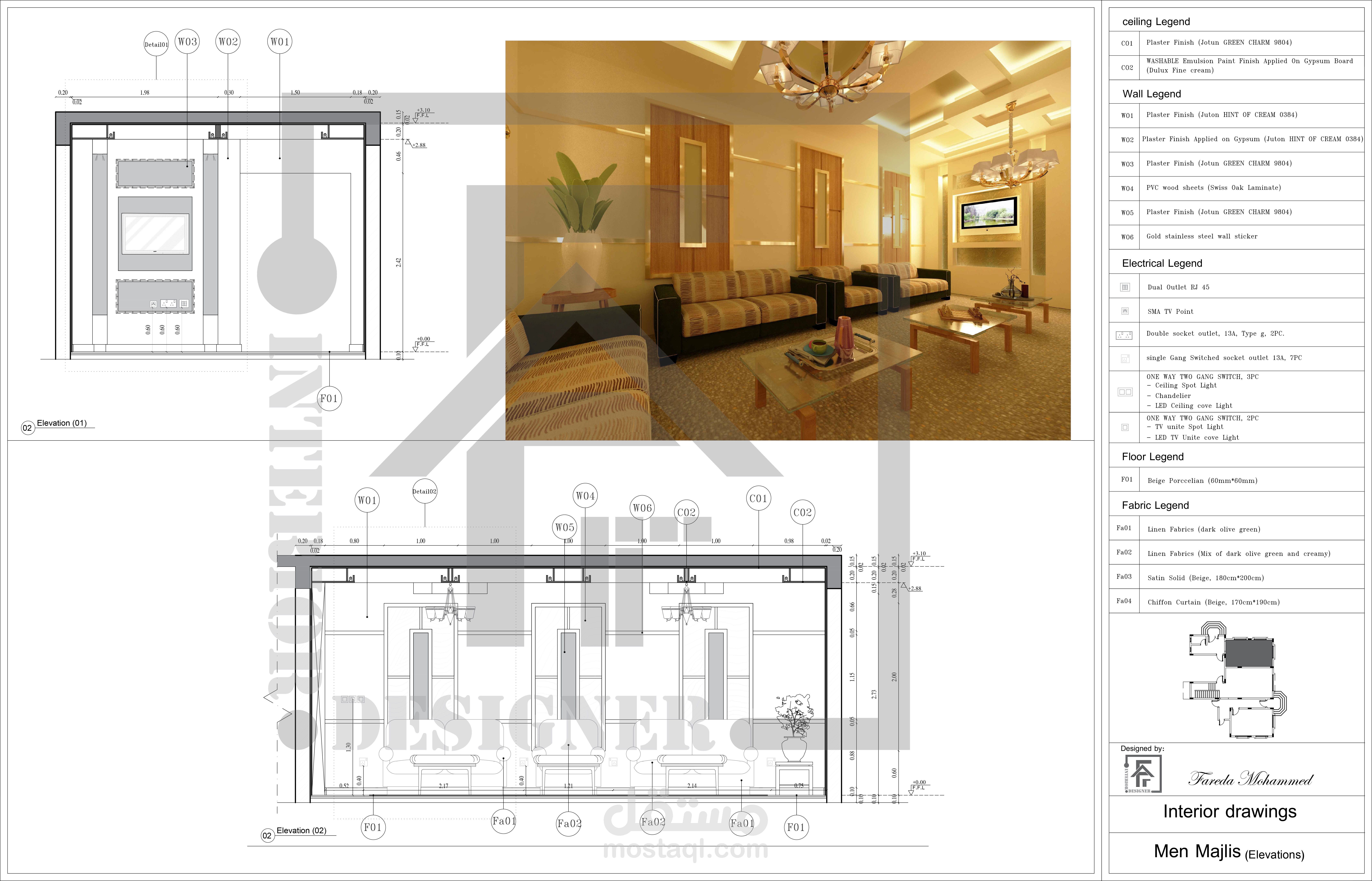 مجلس رجال على طراز نيوكلاسيك، ضمن مشروع تصميم داخلى لفيلا.