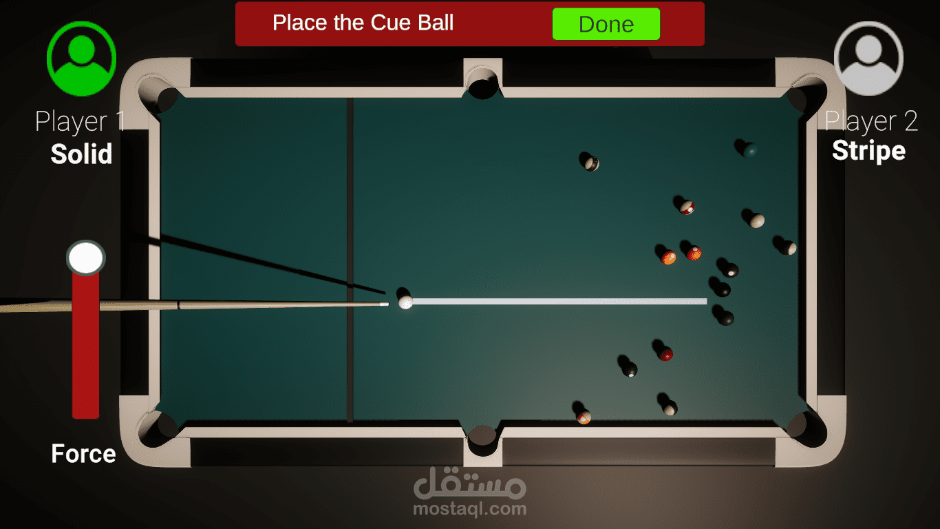 صممت لعبة بيلياردو 3d بجميع قوانين اللعبة و إضافة طابع رعب للعبة بحيث يظهر وحش عشوائيا اذا لم يلعب اللاعب بعد عدد من الثوان، و جو رعب عام بالموسيقى و المؤثرات الصوتية،