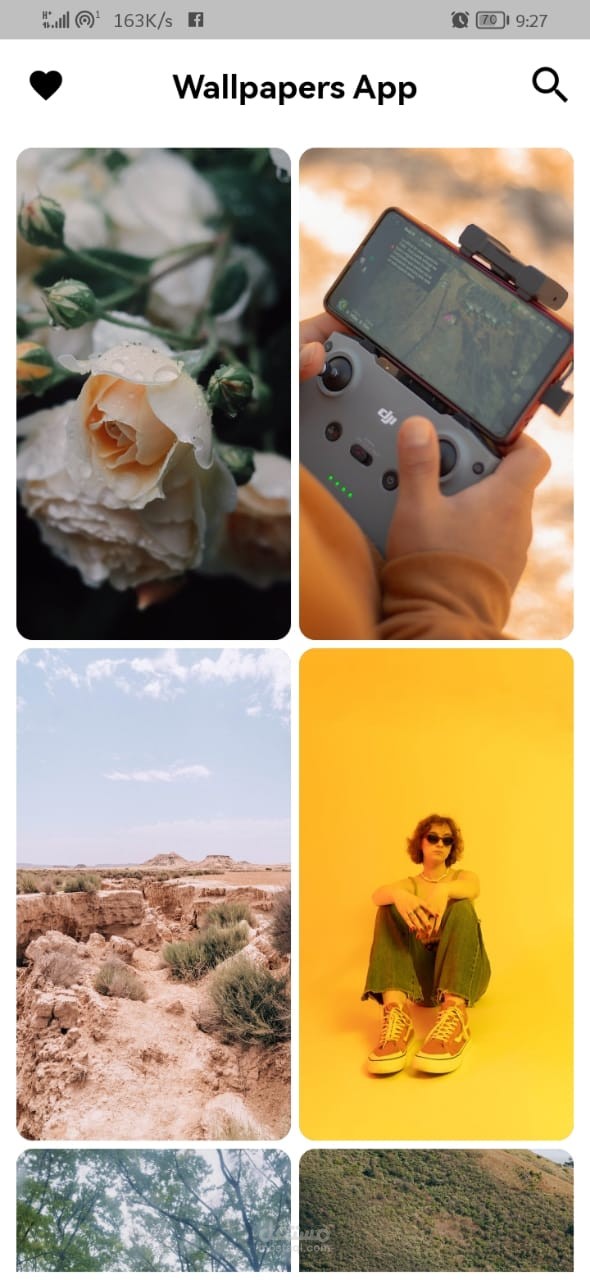 تطبيق يظهر خلفيات للهاتف من مختلف الفئات مع امكانية البحث عن الخلفيات واضافتها للمفضلة وتنزيلها ايضا.