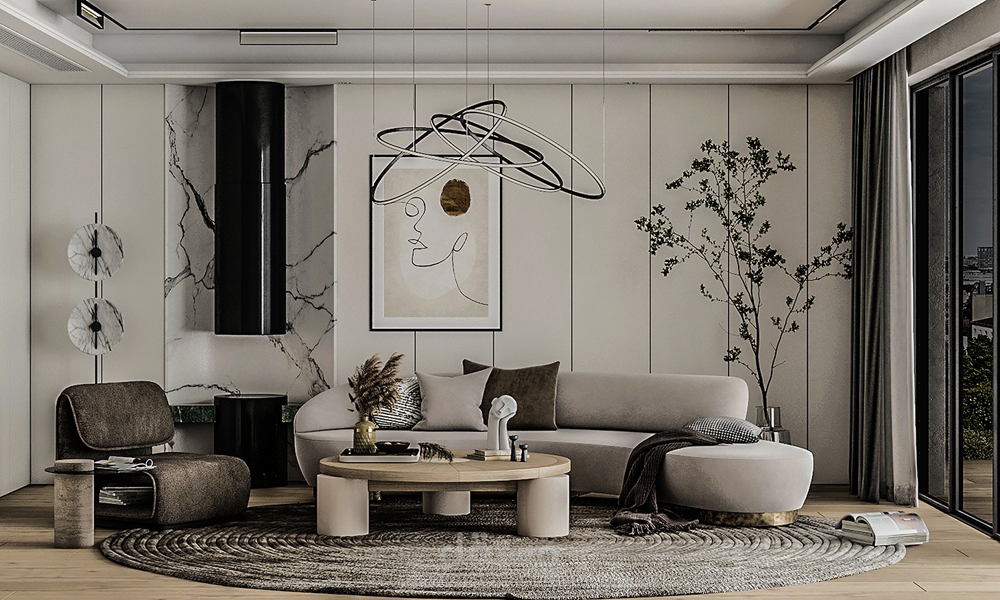 spacious ,cozy space with a minimalist aesthetic, inspired