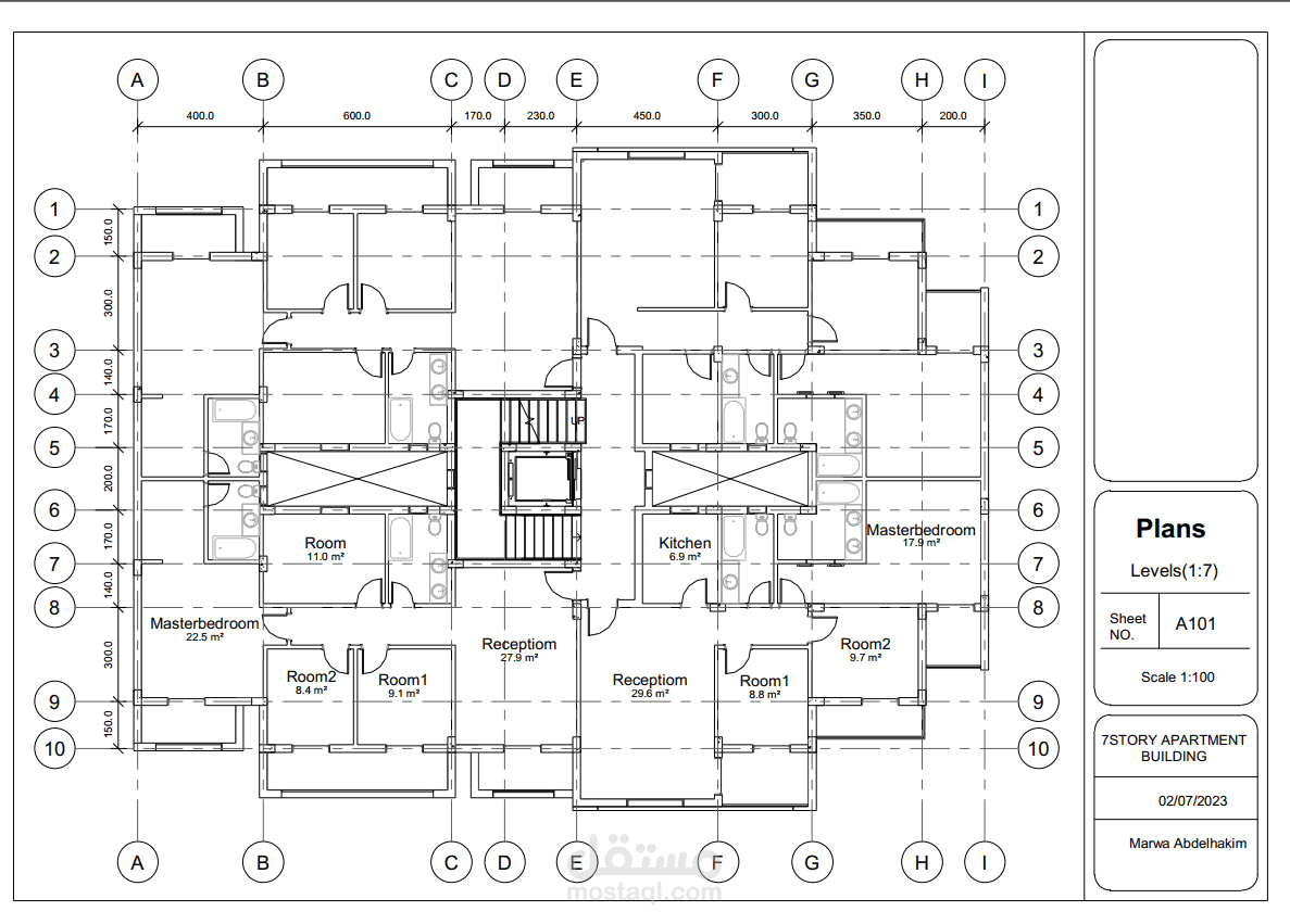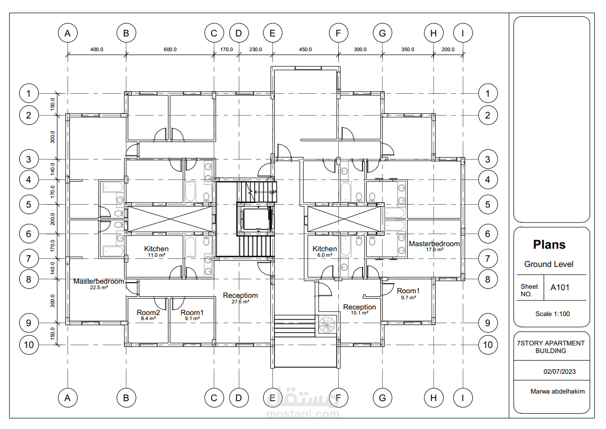 تصميم عمارات سكنية اربعة شقق مساحة100م