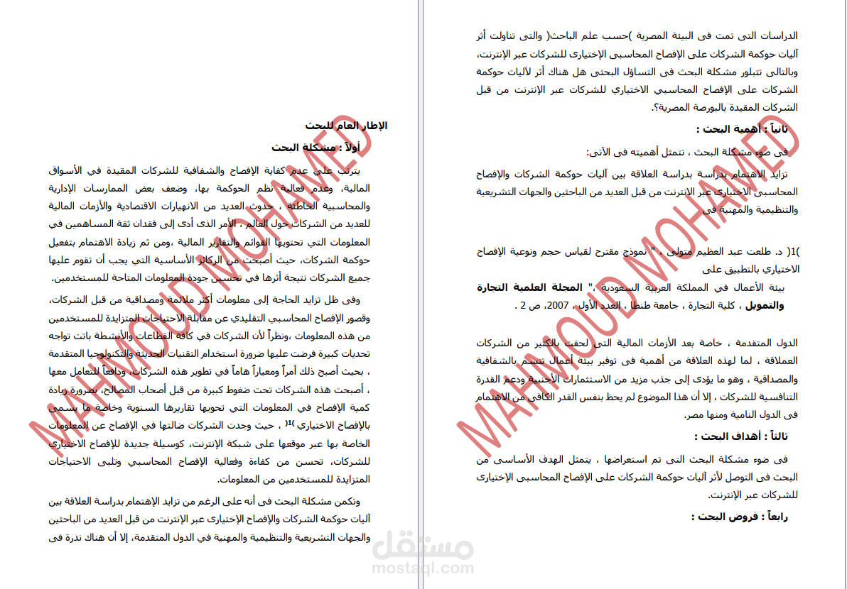 وهي مشاريع بحثية ورسائل ماجستير في الماليات والمحاسبة طُلبت مني ، منها ما سُمح ليَ بنشره وتداوله هنا في مستقل ومنها الذي سأحترمُ فيها رغبة العميل بعدم تداوله ونشره وكانوا ك التالي ك:-