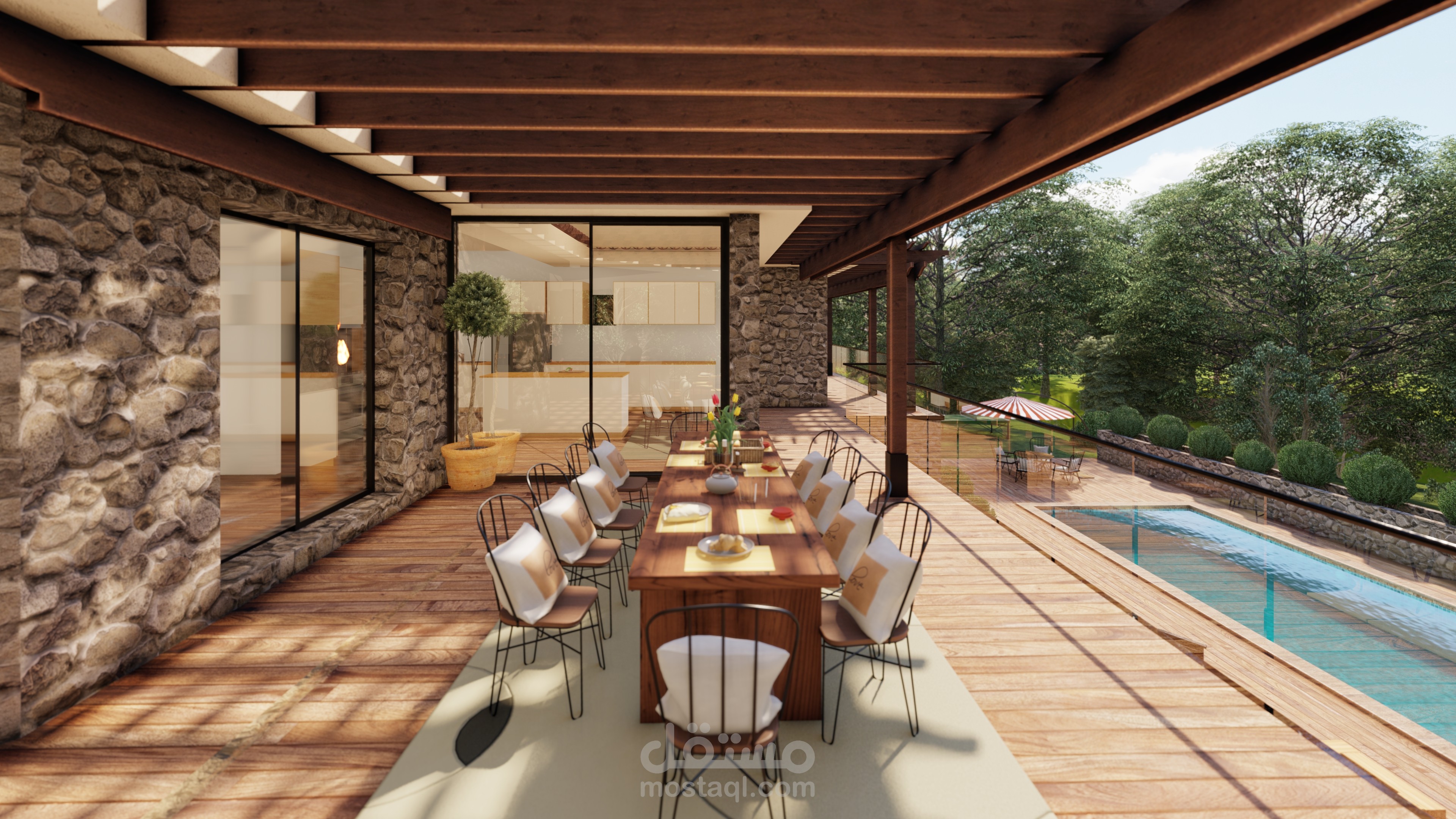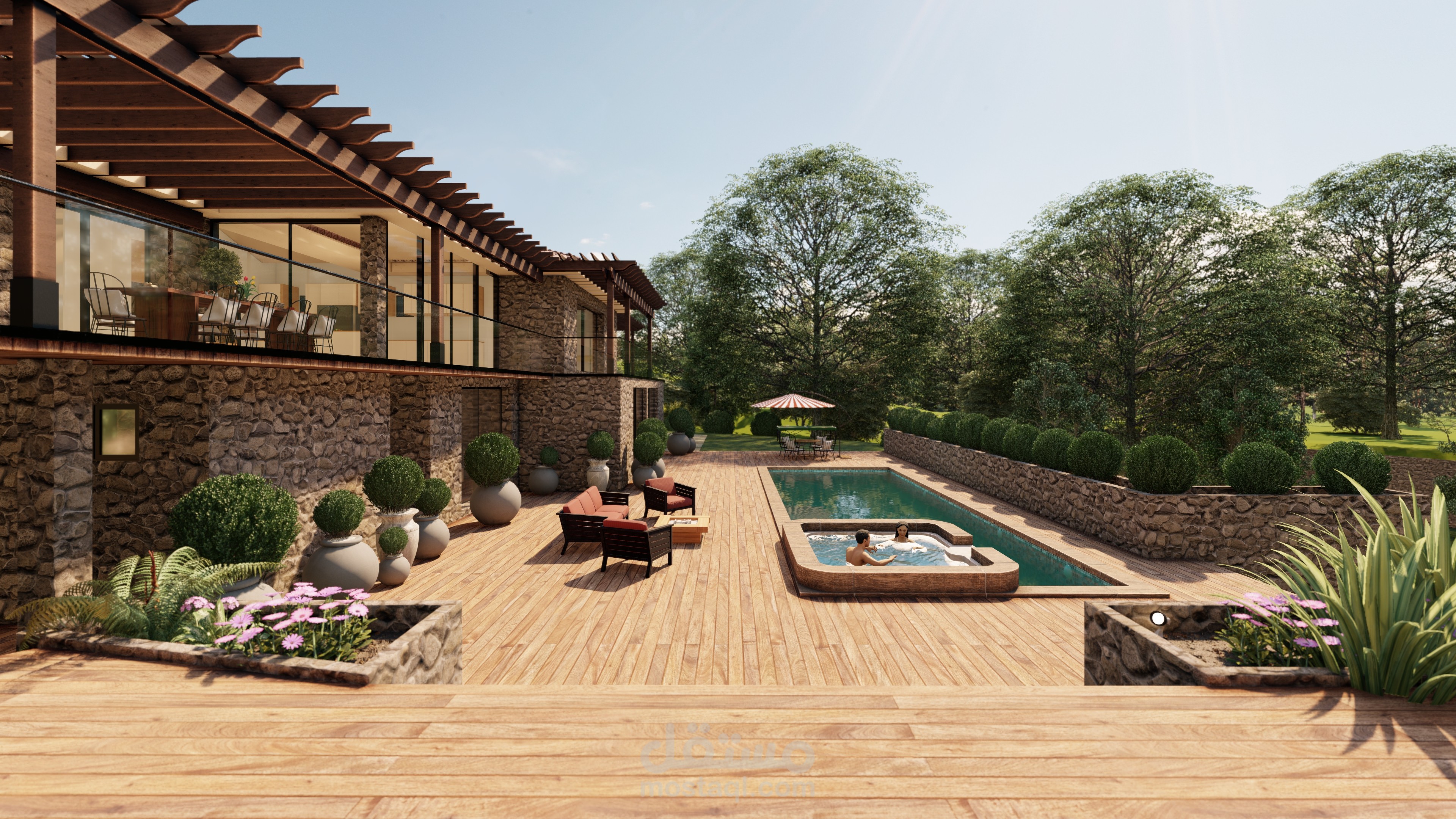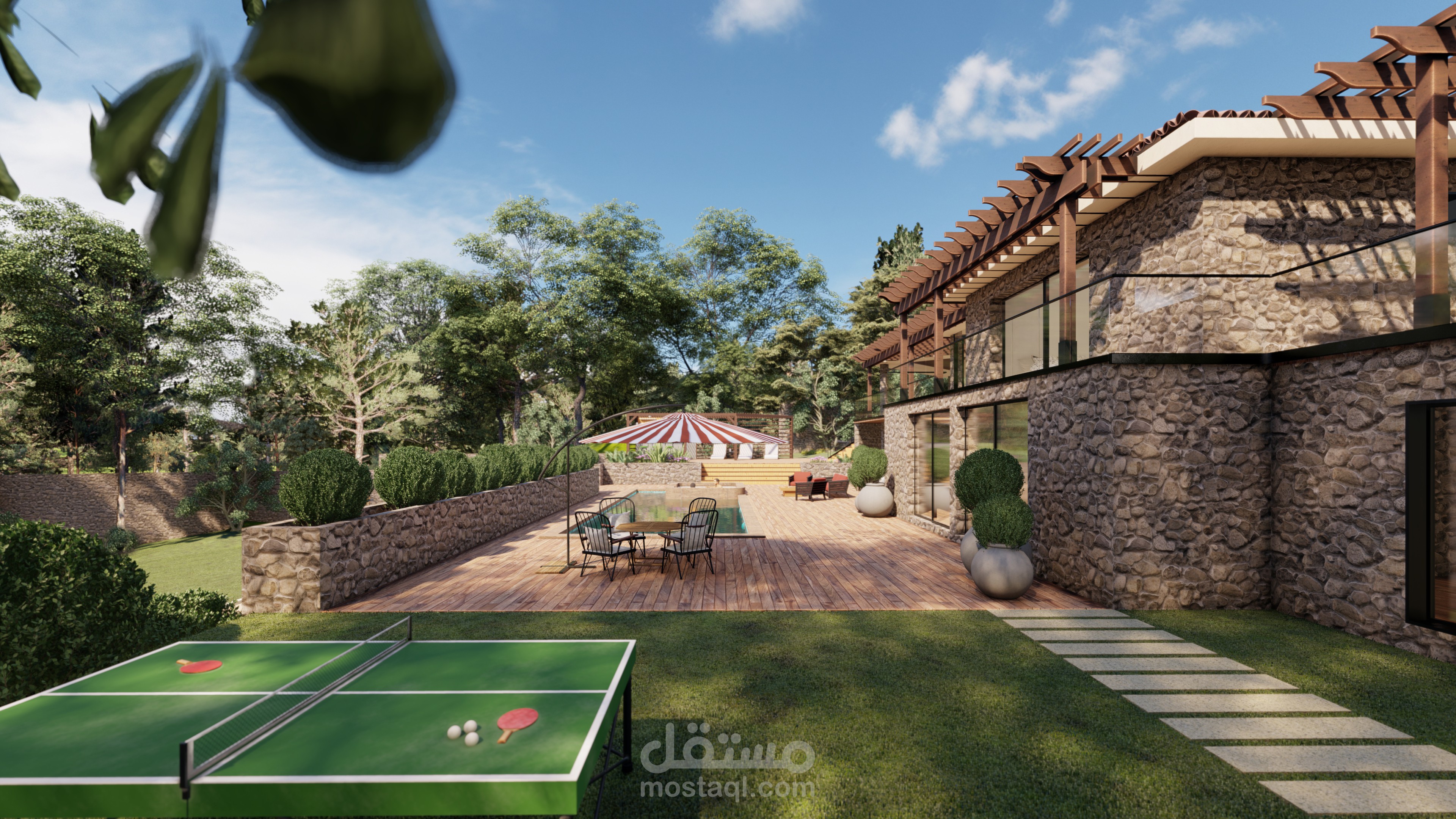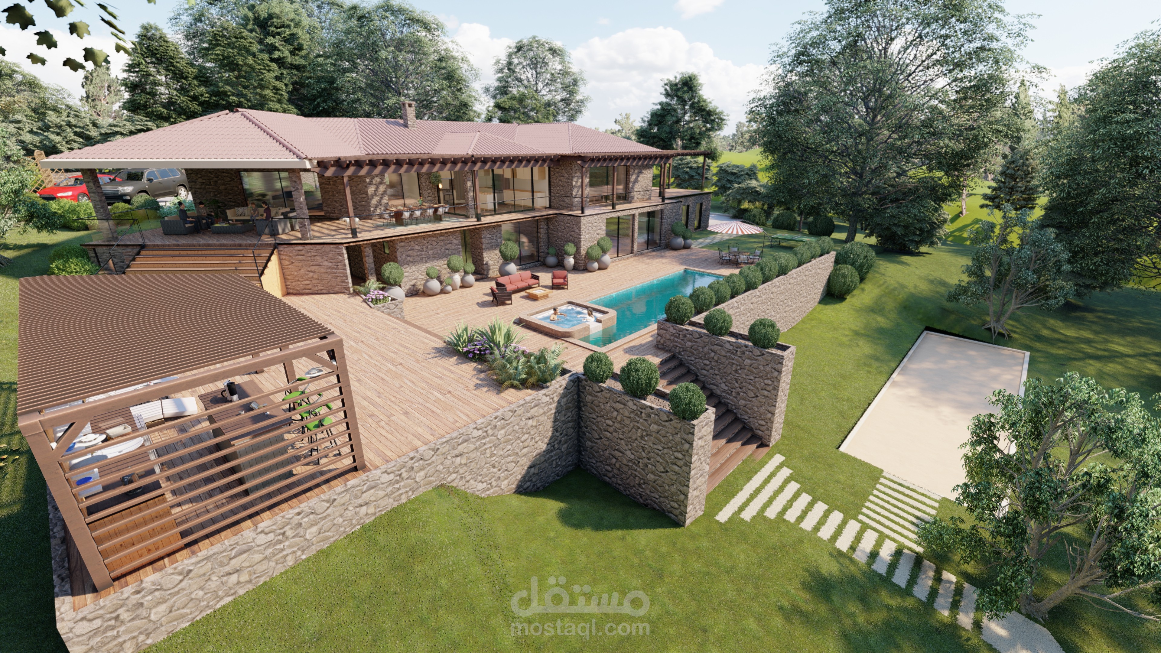 مشروع لاندسكيب لفيلا بفرنسا مع ترميم الواجهات وبناء اجزاء تكميلية ملحقة بمبنى الفيلا.