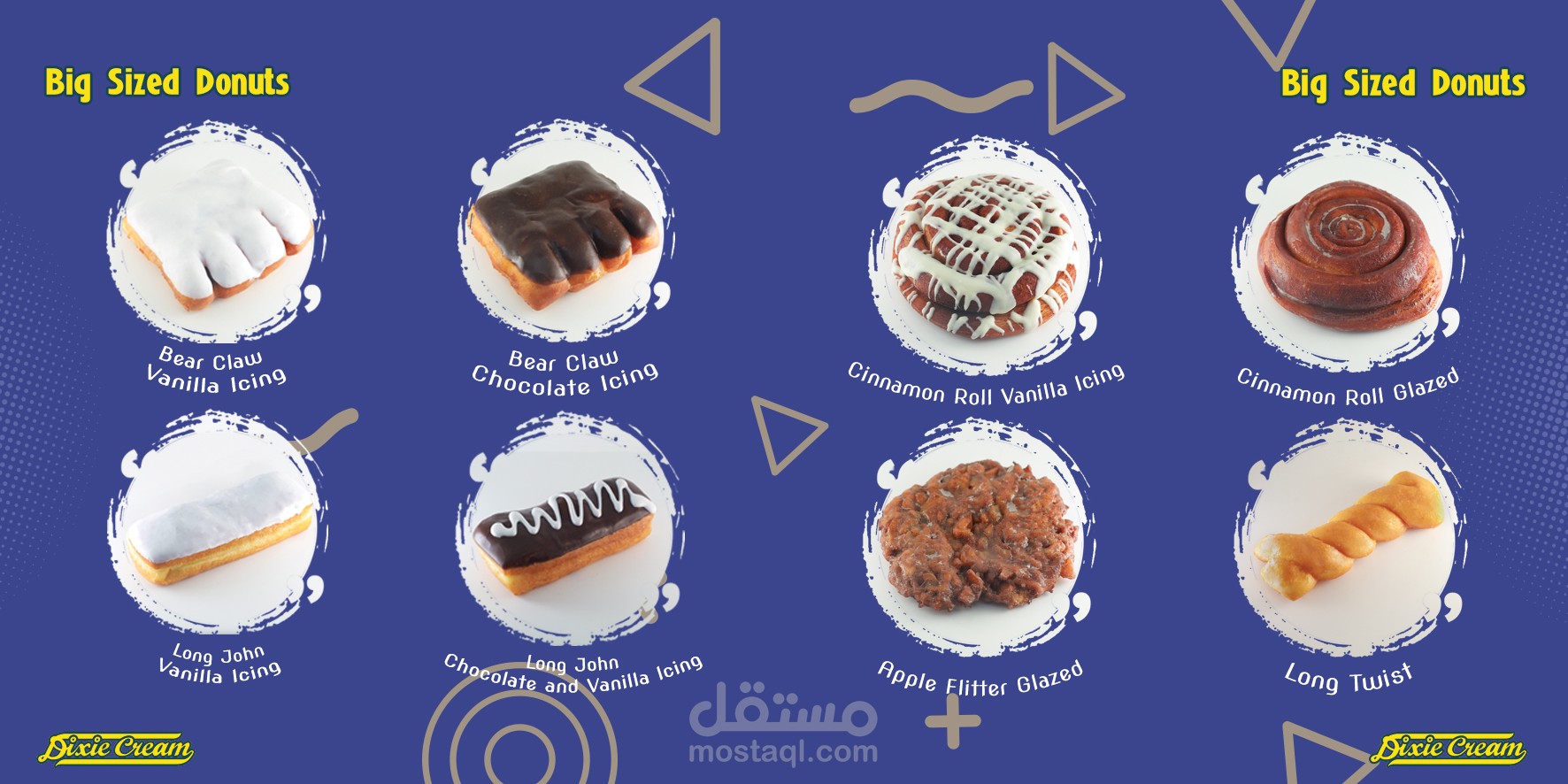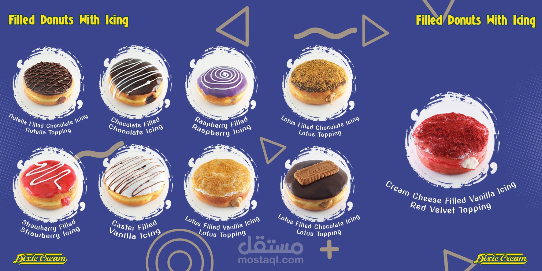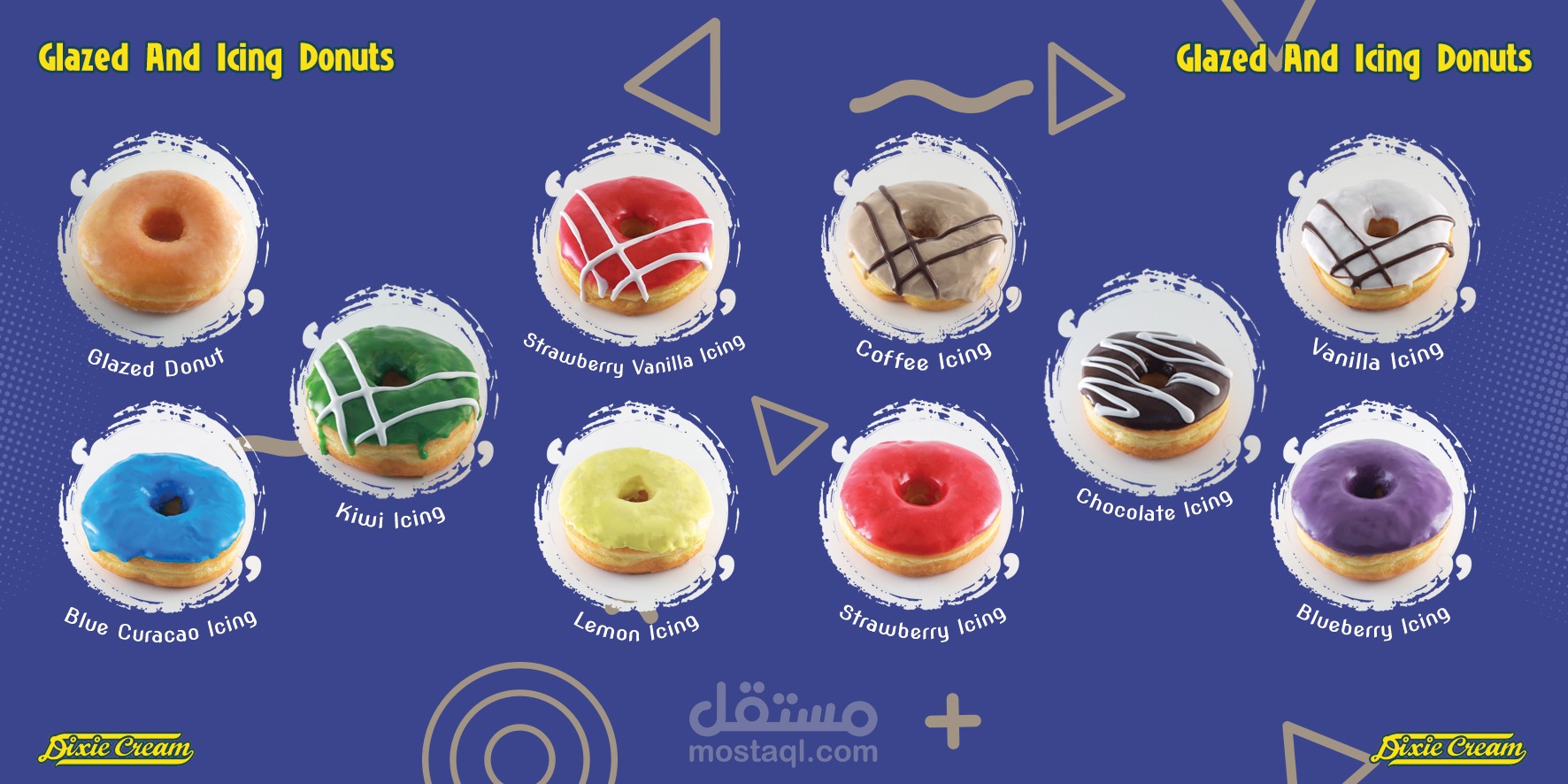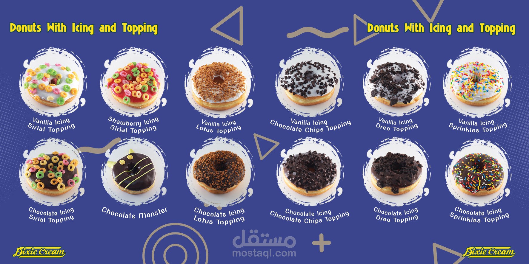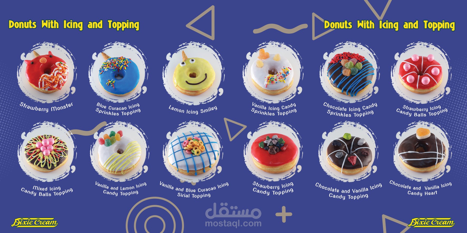 تصوير منتجات دونتس لشركه ديكسي كريم وتصميم كتالوج مع مراعاه الهويه البصريه والالوان في التصميم
