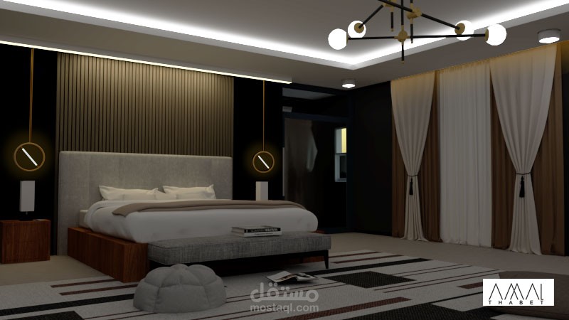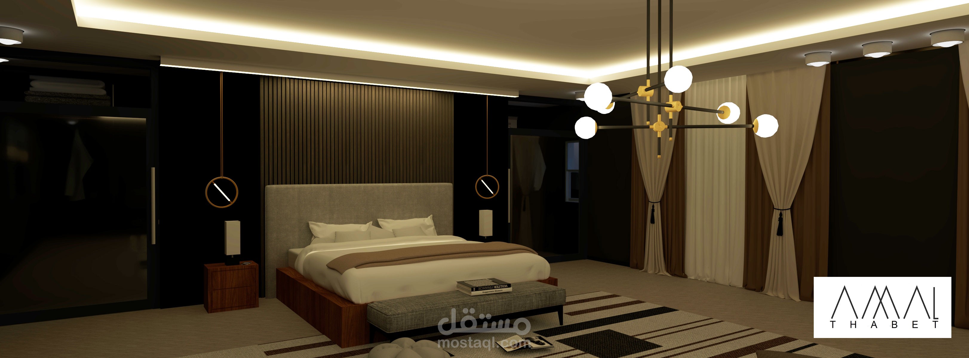 تصميم داخلي لغرفة نوم مع غرفة تغيير ملابس داخل الغرفة