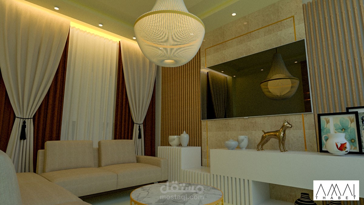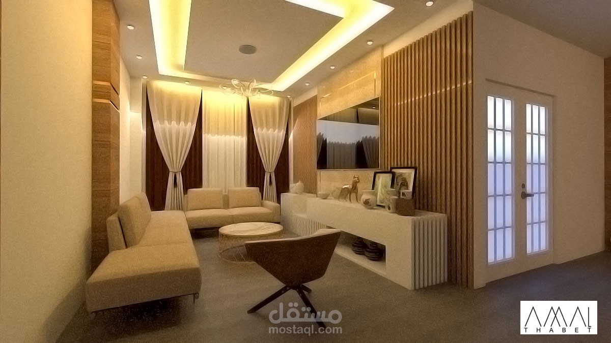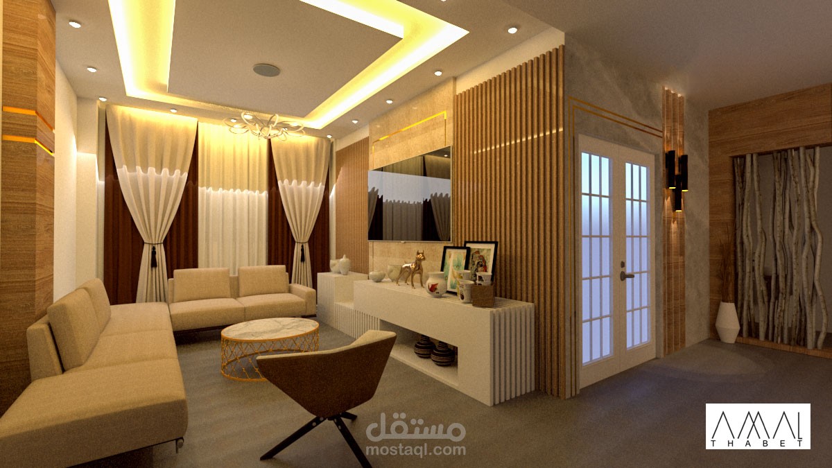 تصميم غرفة جلوس دافئة وعائليىة وبتصميم عصري حسب طلب العميل