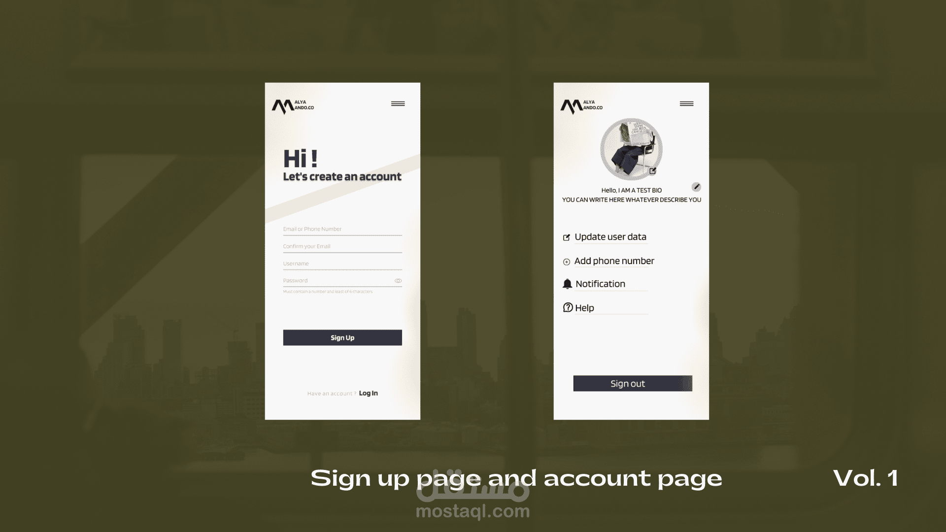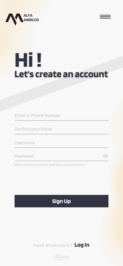 تصميم صفحة انشاء الحساب