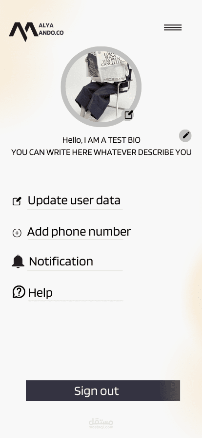 ثم تصميم لصفحة الحساب بعد الانشاء.