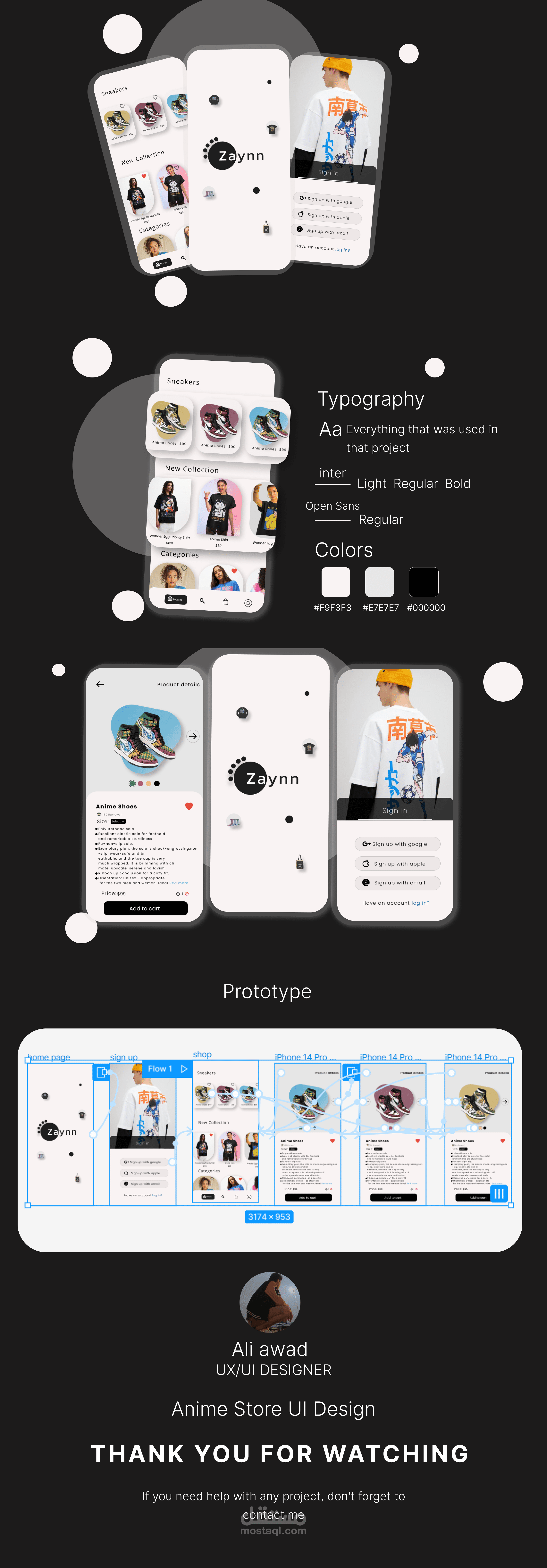 باختصار، تصميم تطبيق Zaynn لمتجر منتجات الأنمي يتميز بالابتكار والجمال، ويوفر تجربة مستخدم ممتعة وسهلة الاستخدام.