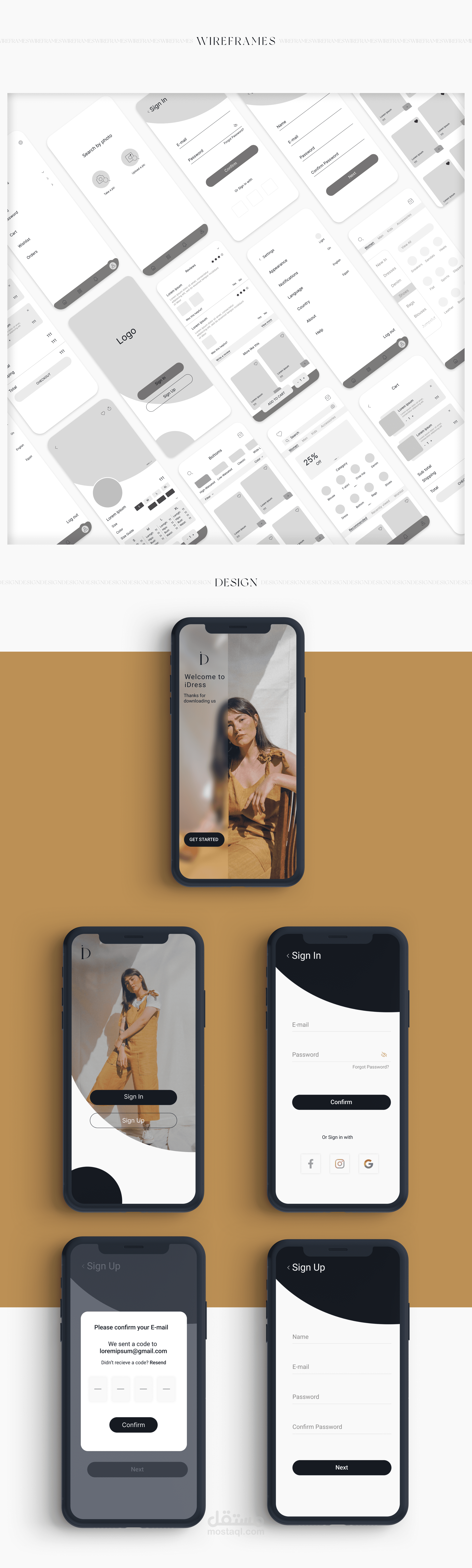 I created the wireframes based on detailed description of the Information Architecture after that i added the colors and elelmets