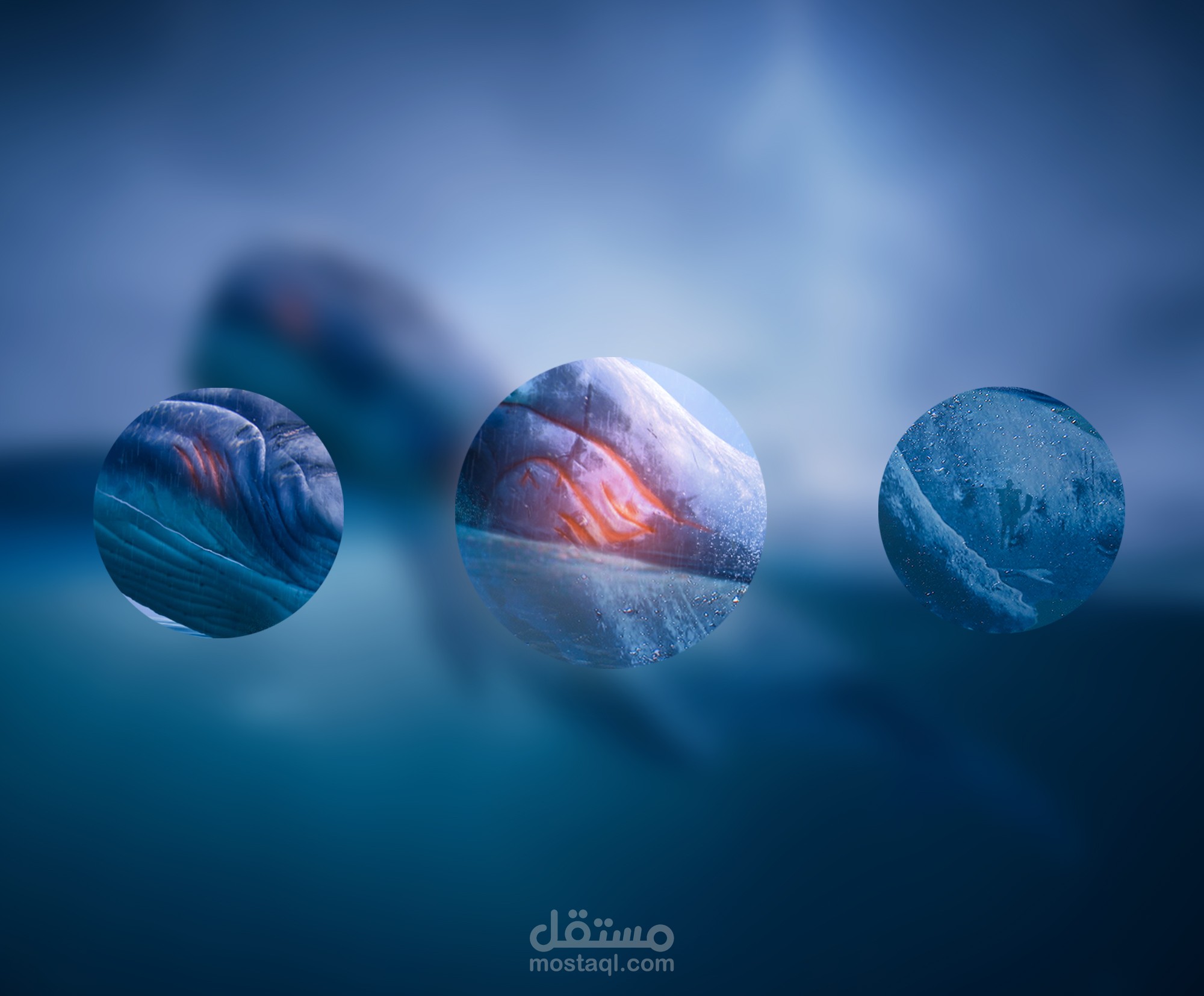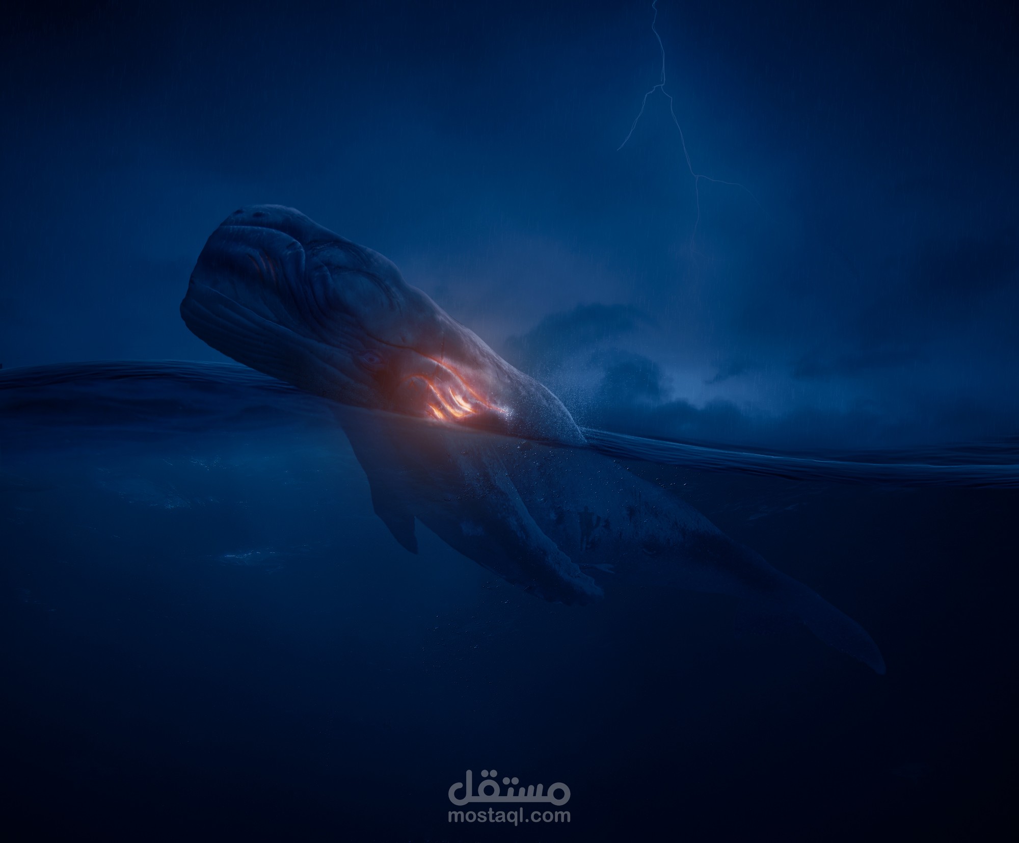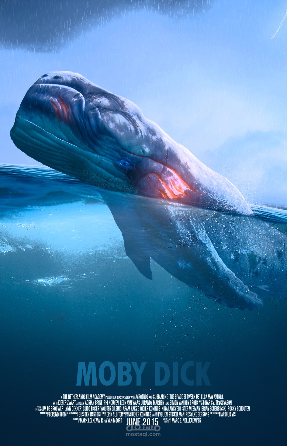 يتحدث العمل عن تصميم لحوت الموبي ديك المشهور وهو حائم ما بين الماء وخارجها هاربا من السفينتين