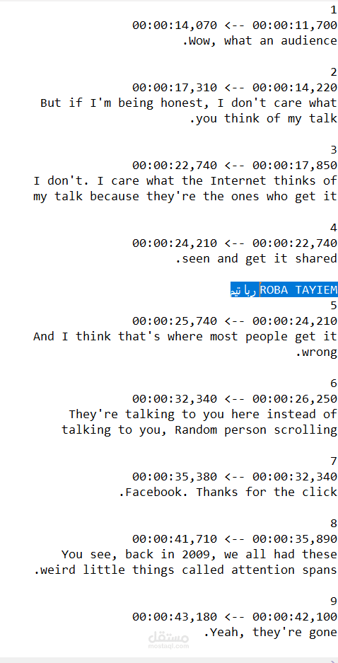 يمكنك إستلام العمل بصيغة SRT أو بصيغة Word.