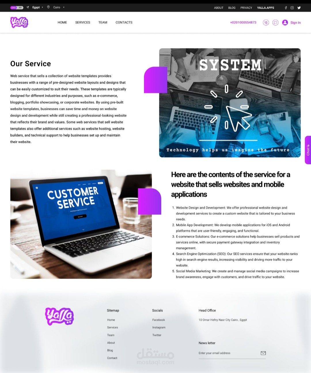 A website for selling web pages, websites and mobile applications
