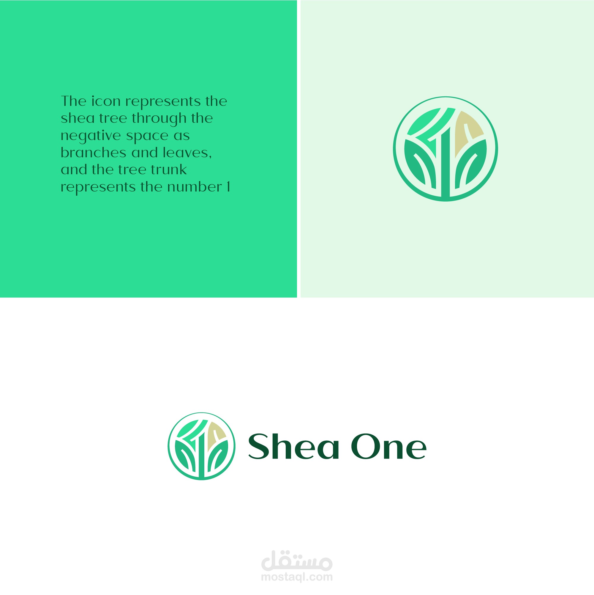 The icon represents the shea tree through the negative space as branches and leaves, and the tree trunk represents the number 1