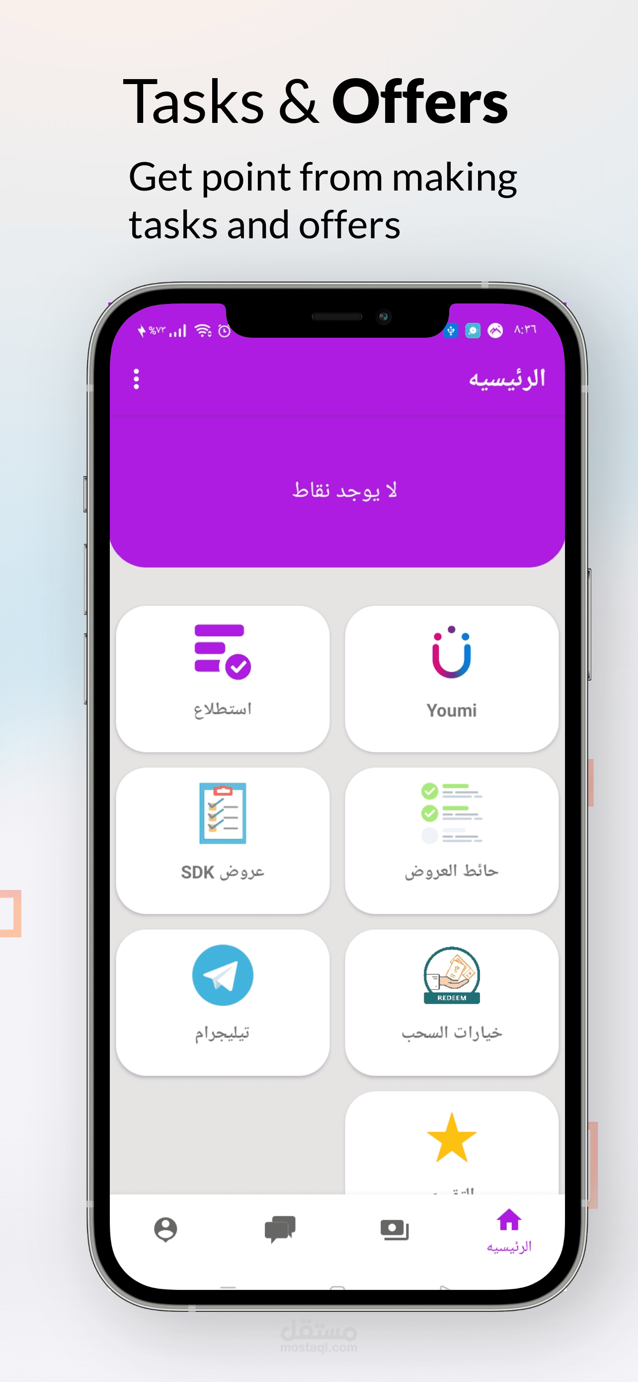 يتميز التطبيق بتصميم بسيط وسهل الاستخدام، حيث يتيح للمستخدم عمل مهام وإكتساب المال وسحب المال بسرعة وسهولة .