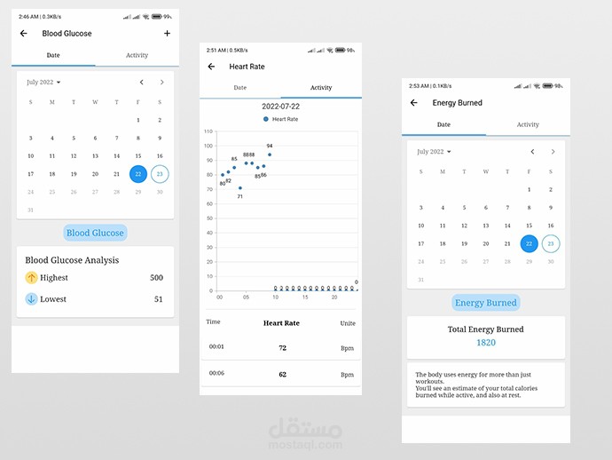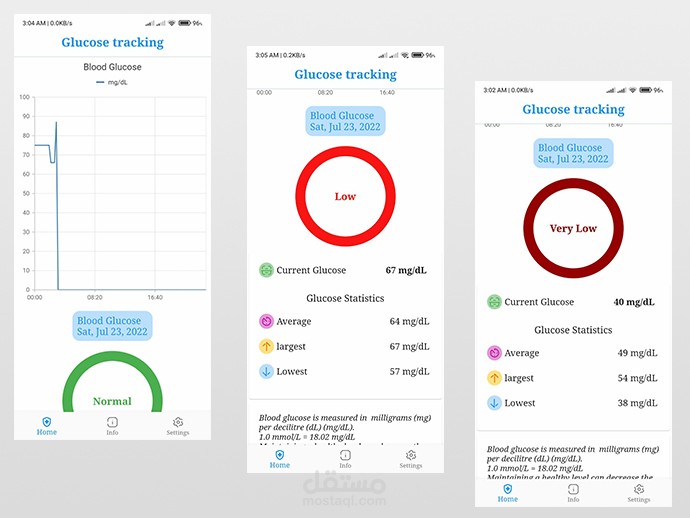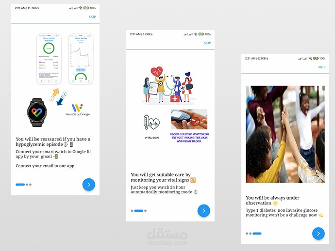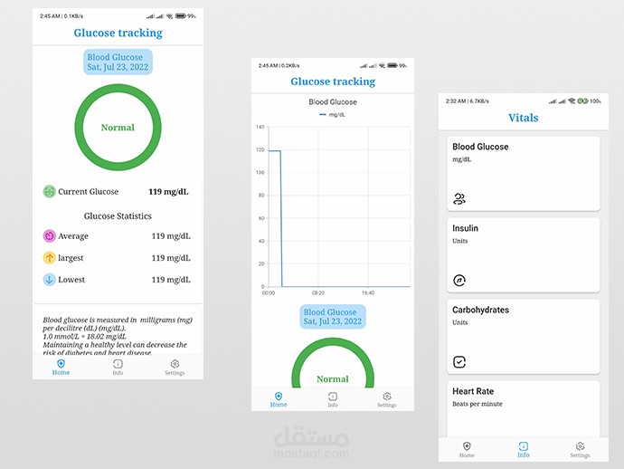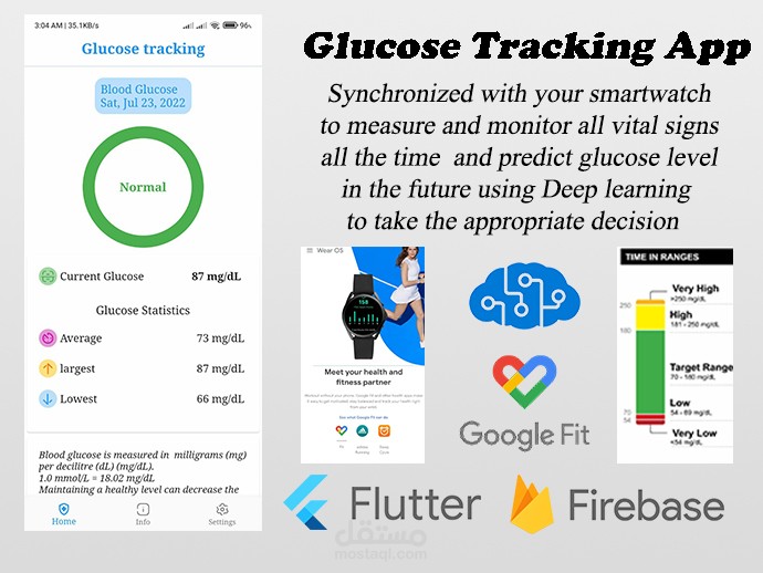 Synchronized with your smartwatch to measure and monitor all vital signs all the time and predict your glucose level in the future using Deep learning to take the appropriate decision