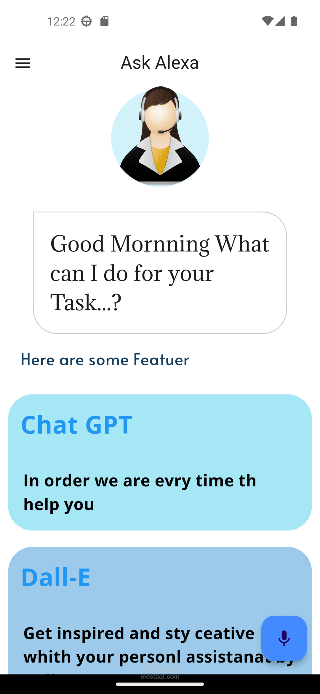 عبارة عن تطبيق يستخدم الذكاء الصناعي عن طريق المايكرفون تسال ما الذي تريدة او تبحث عنه ويقوم التطبيق بالجواب.