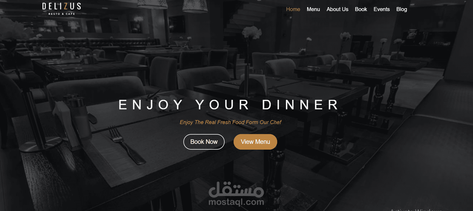 موقع ويب لمطعم تم تطويره باستخدام HTML5, CSS, and JavaScript.