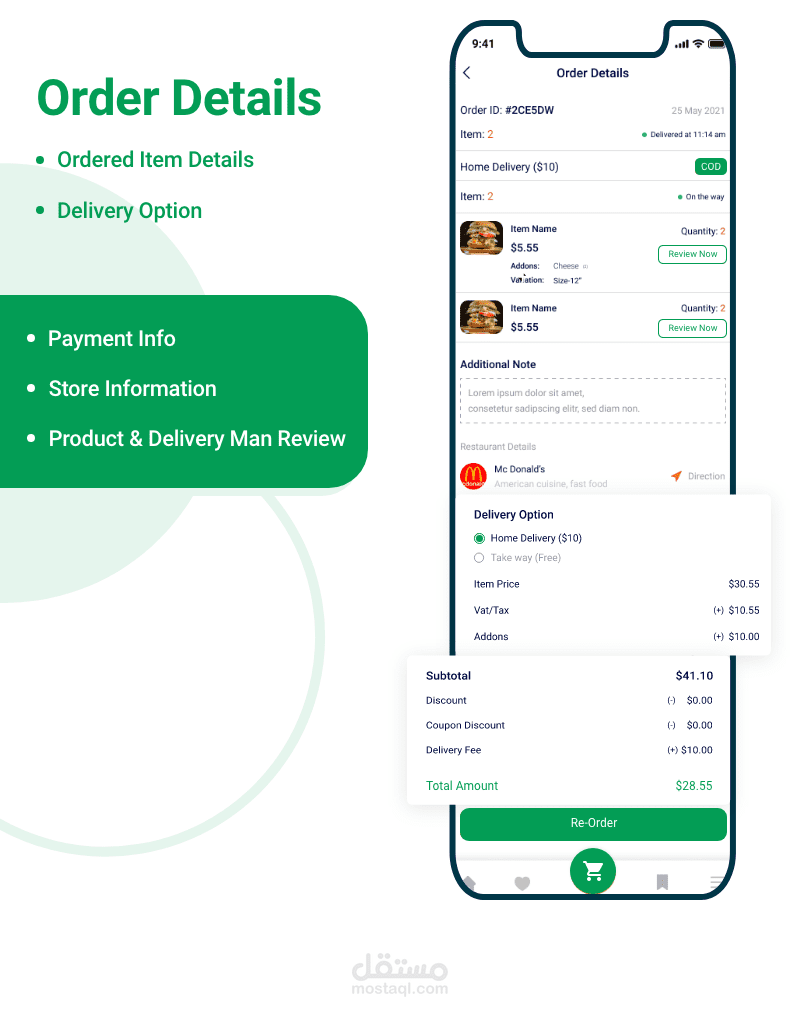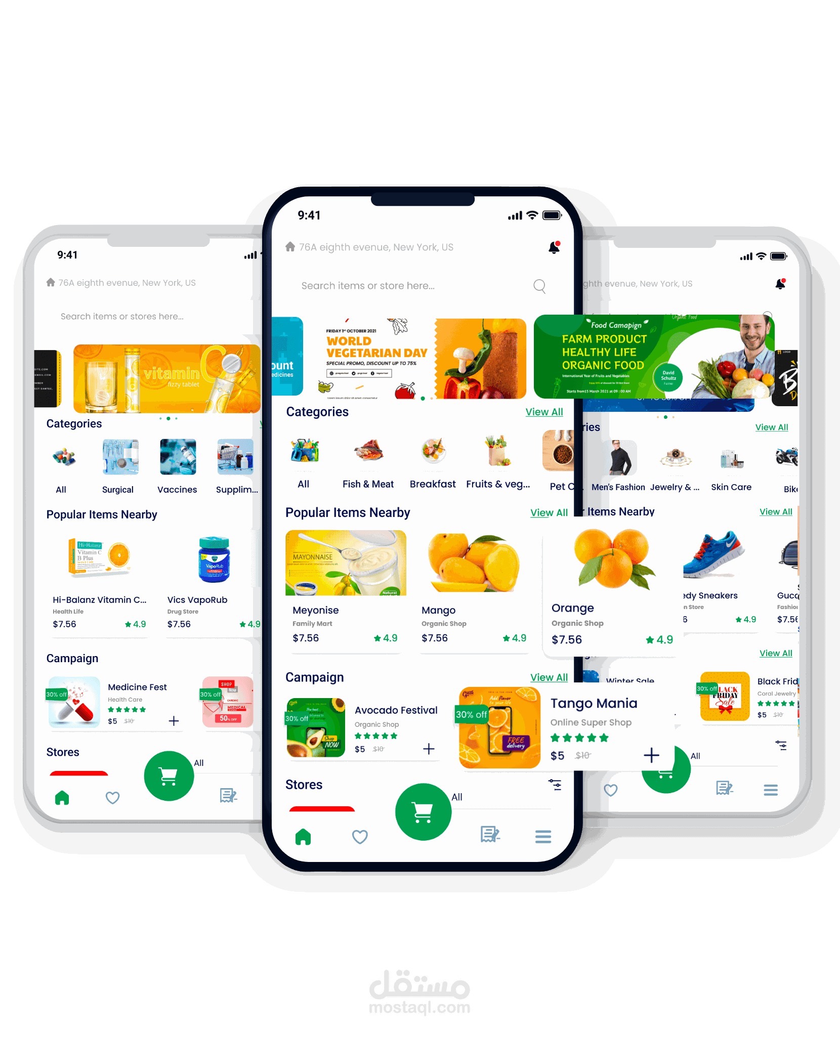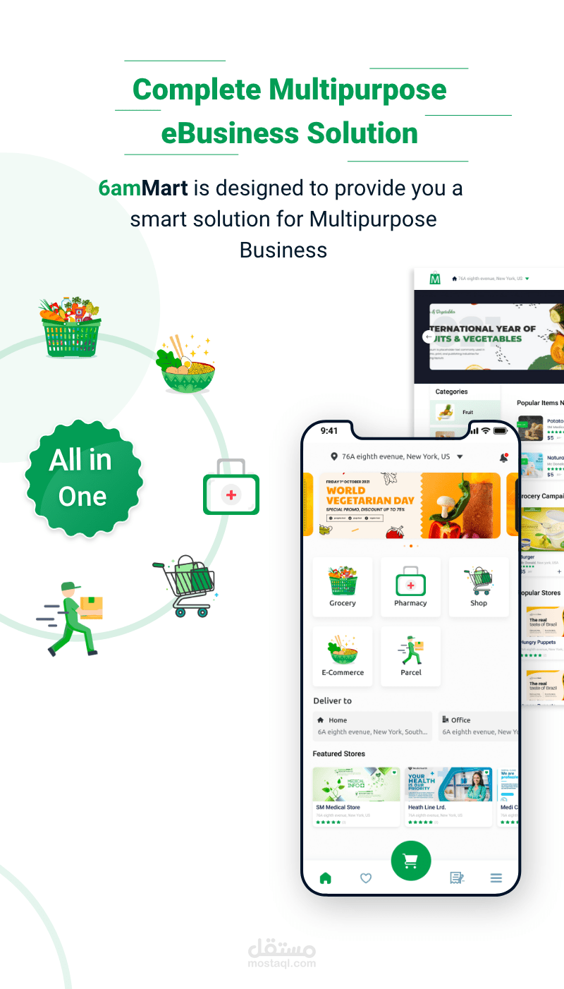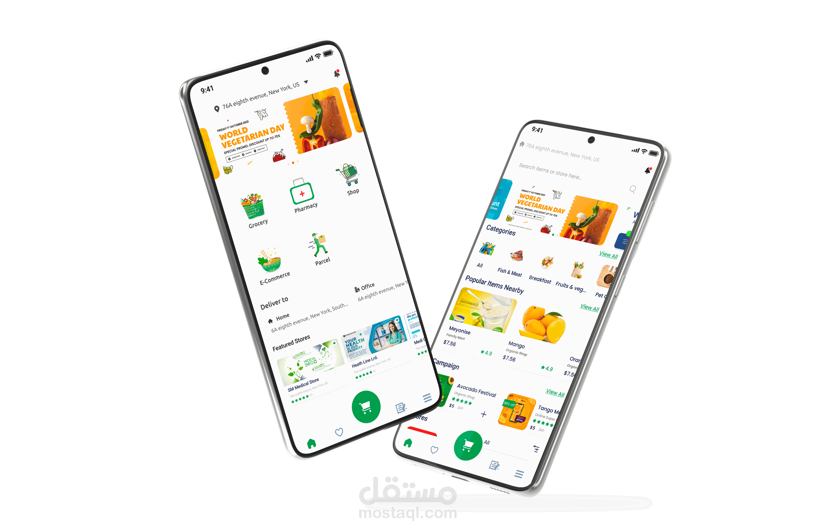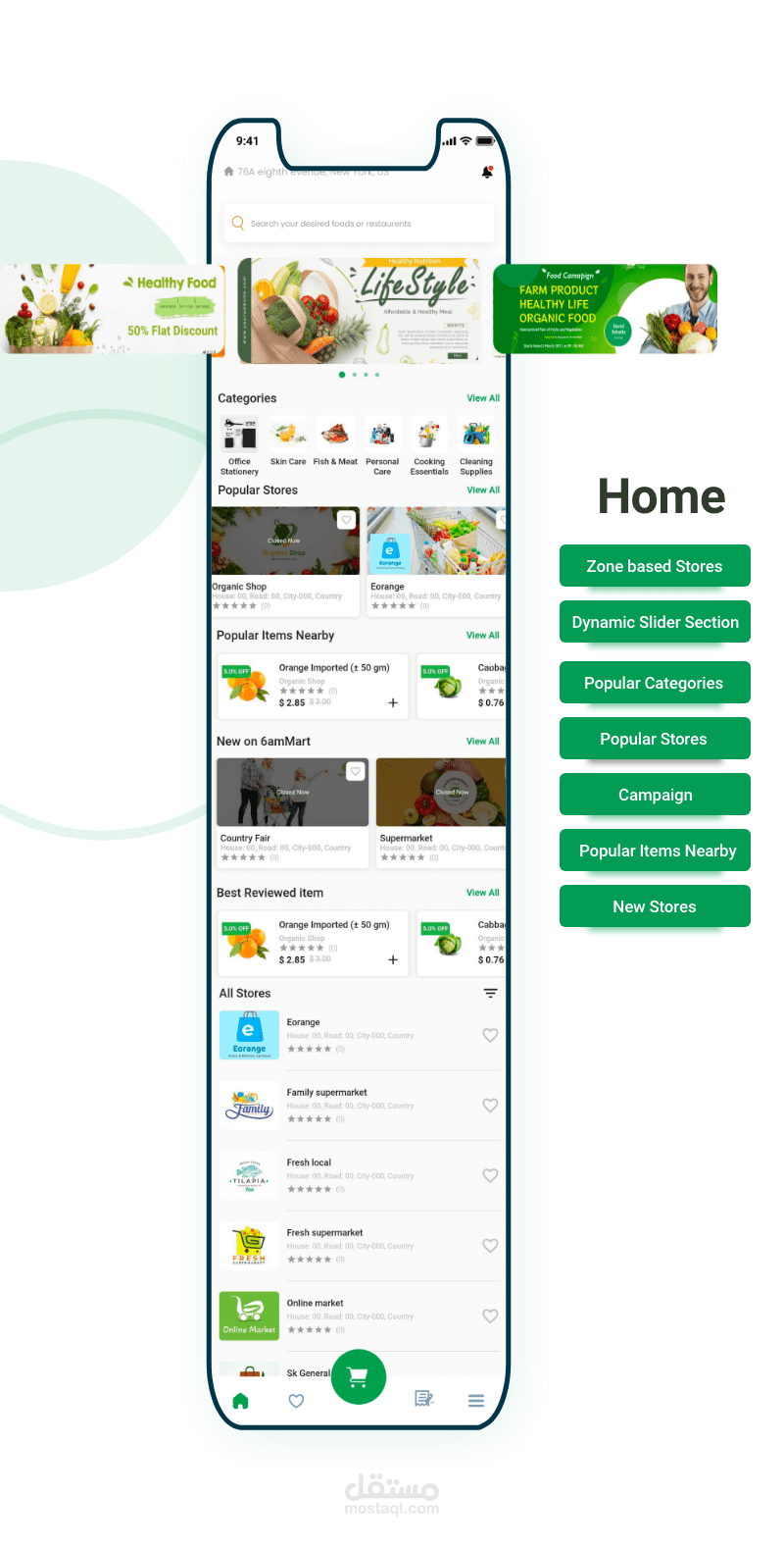 يمكن للمستخدمين من خلال التطبيق تصفح الأقسام والمحلات والمنتجات المتاحة حسب المنطقة المتواجدين بها , يمكن تقسيم المناطق بسهولة من لوحة التحكم , بعد اختيار المستخدم للمنتجات يختار طريقة الدفع او يمكنه الحجز ويذهب بنفسه .