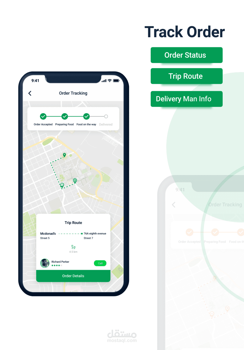 تطبيق مندوب التوصيل يسهل عملية الوصول للعملاء , بحيث يتم وصول الطلبات الي التطبيق وبعد ان يقبلها المندوب يستطيع رؤية موقع العميل بدقة عن طريق خرائط جوجل كما تتاح له الاتجاهات لتسهيل عملية الوصول .