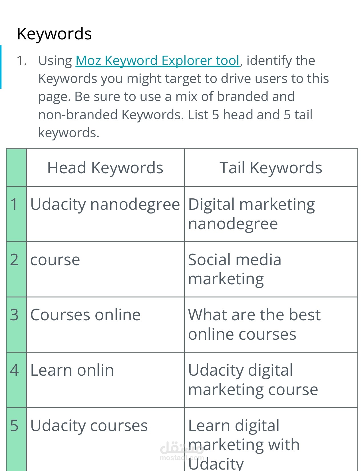 اختيار وتقييم الكلمات الرئيسية لمطابقة المحتوى باستخدام (أداة Moz keyword explorer).