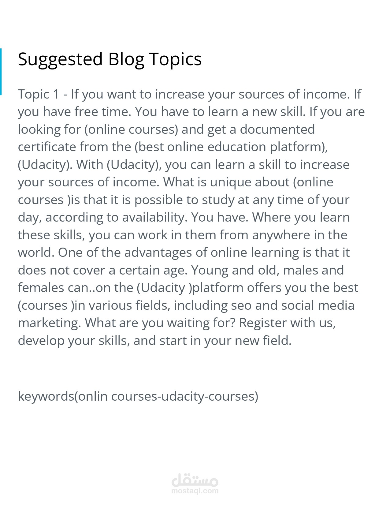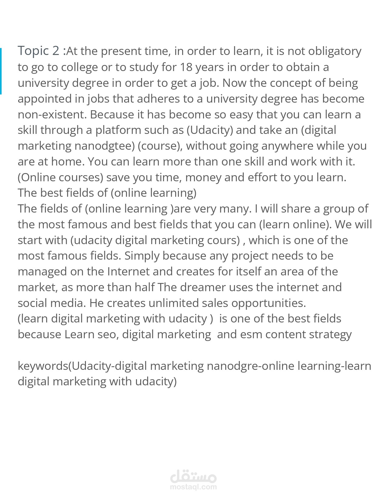 لقد كتبت محتوى الصفحة ليطابق الكلمات الرئيسية والموضوع والشخصية المستهدفة.