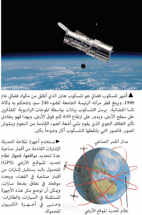 أنواع الأقمار الصناعية: يوجد مجموعة متنوعة من الأقمار الصناعية المختلفة، بما في ذلك أقمار الاتصالات، وأقمار المراقبة الأرضية، وأقمار الملاحة، وأقمار البحث العلمي. يمكنك استكشاف أنواع الأقمار الصناعية المختلفة وشرح وظائفها واستخداماتها.