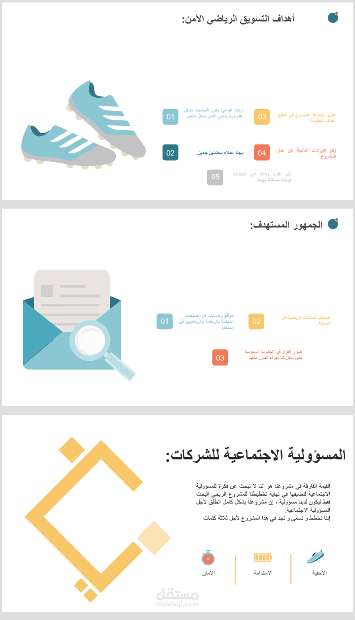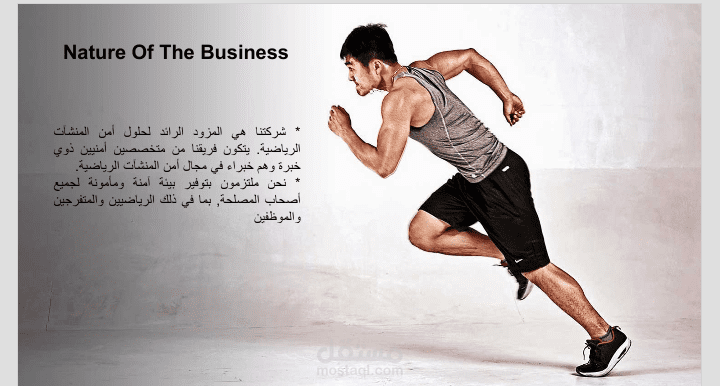 قمت في هذا العمل بتصميم عرض بوربويبنت لمؤسسة رياضية