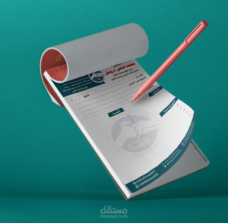 تصميم روشتة دكتور واضافة اسم الدكتور واسم العيادة وعنوانها وكل ما يحتاج اليه المريض.