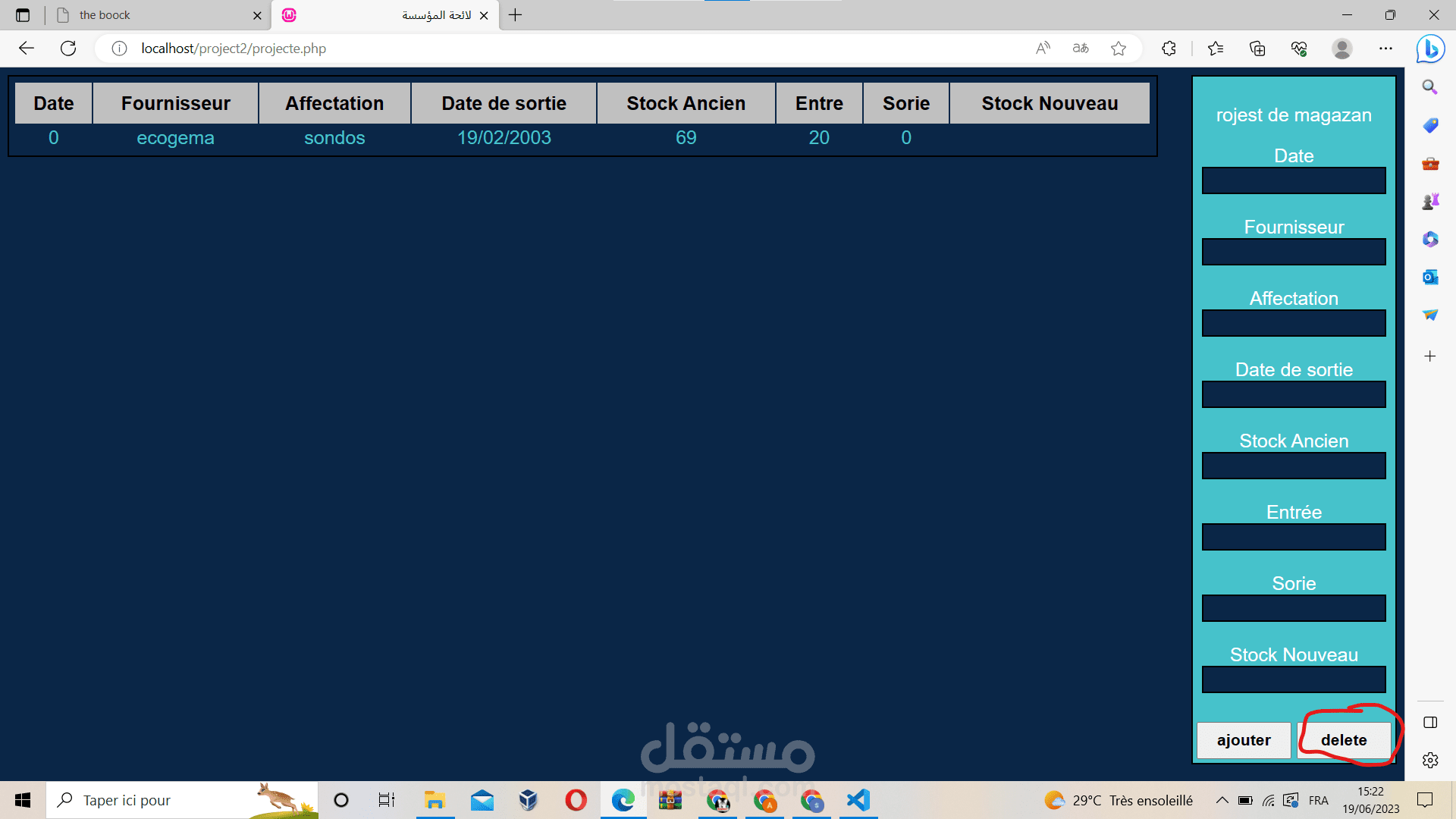هاذ التطبيق خاص بالادارات فهو يدخل المعلومات الخاصة بالمستفيد من الصفقات ومتى تمت والمجموع وفي حالة ماقمت بالغلط فيمكنك المسح عن طريق date عن طريق ادخال الرقم والضغذ على delete