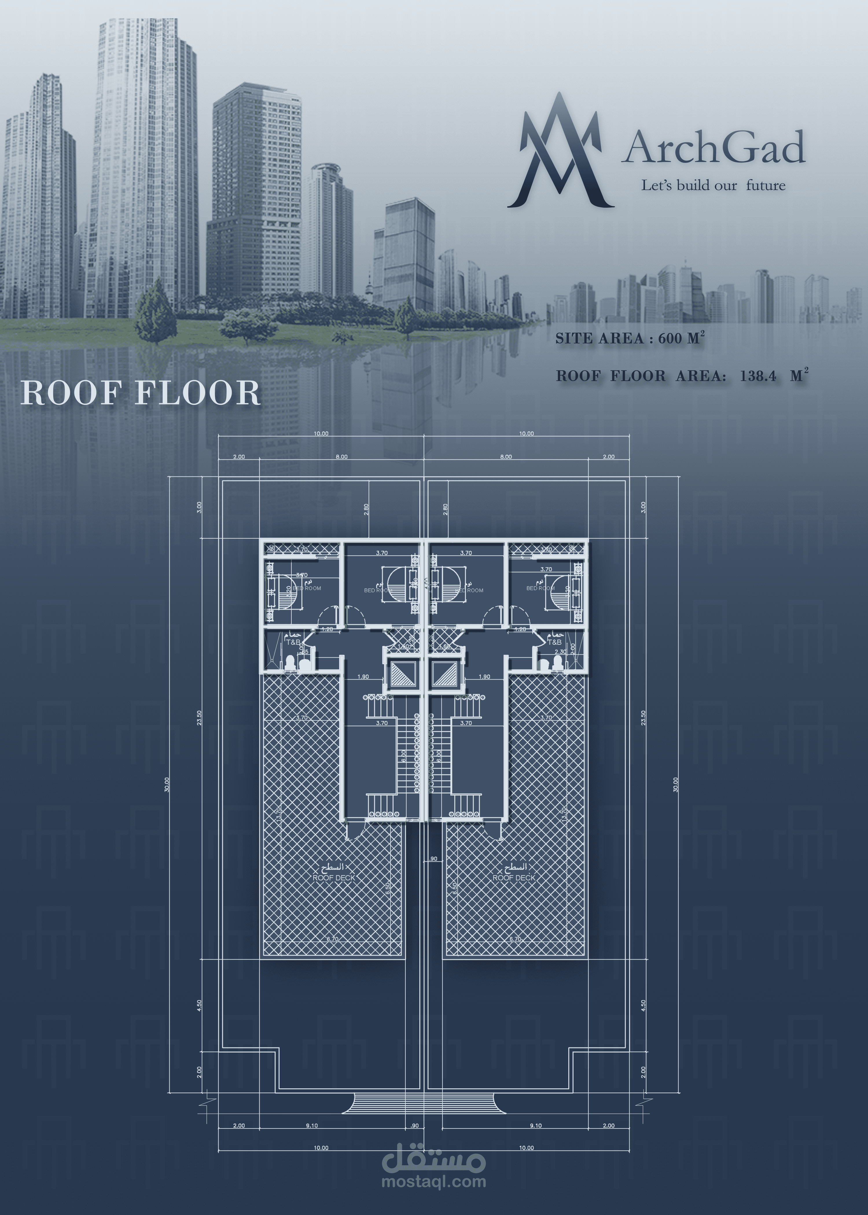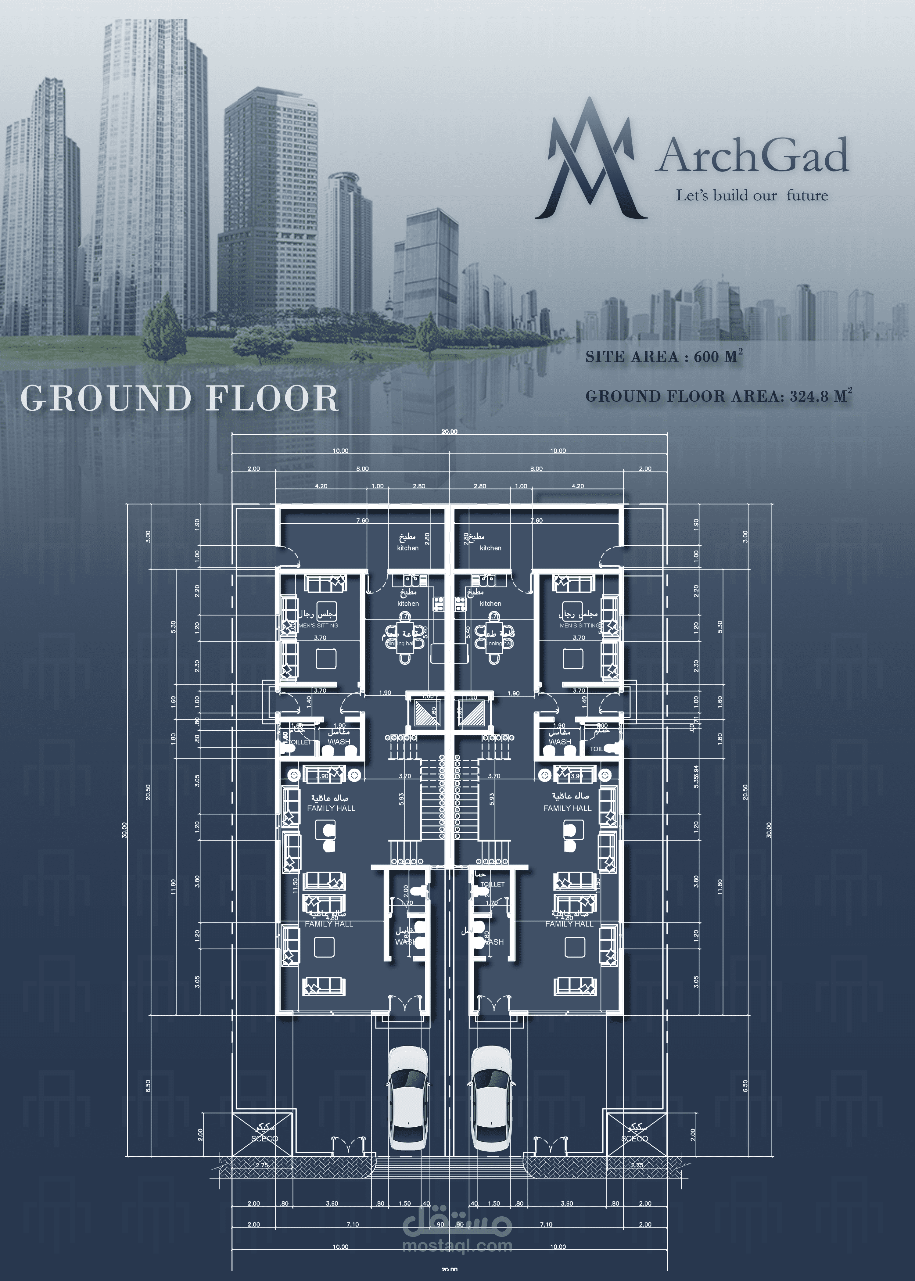 تصميم مخطط معماري لفيلا سكنية في المملكة العربية السعودية على قطعة ارض مساحتها 600 متر مربع ( 30*20)