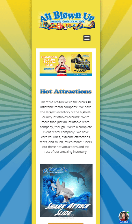 The mission of All Blown Up Inflatable Rentals is to provide clean, alternative fun in a positive environment while providing exceptional service to all of their clients. They pride themselves on providing excellent customer service, safe and clean equipment, on-time delivery and affordable prices!